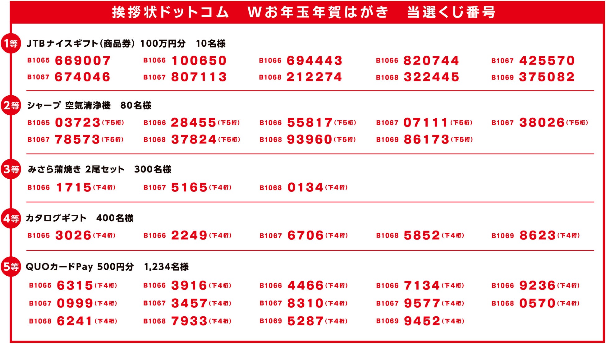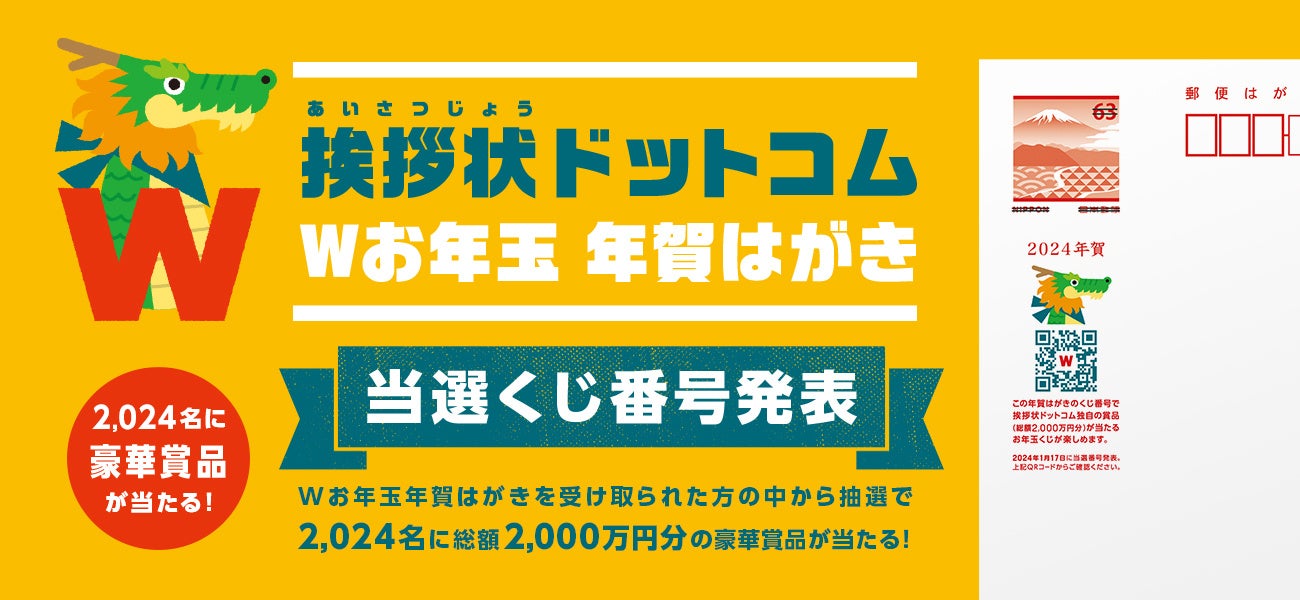 挨拶状ドットコム「Wお年玉年賀はがき」当選くじ番号を発表