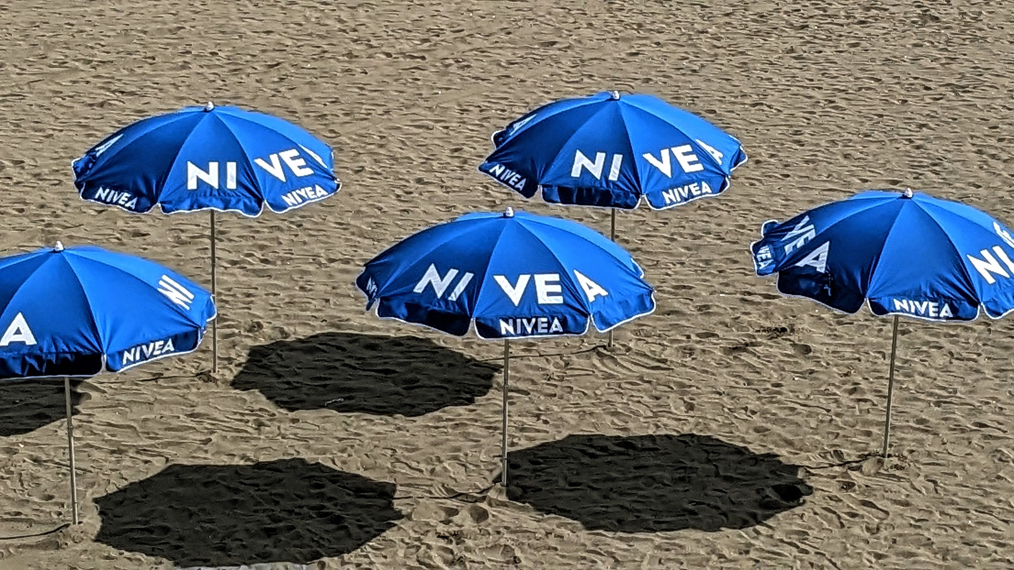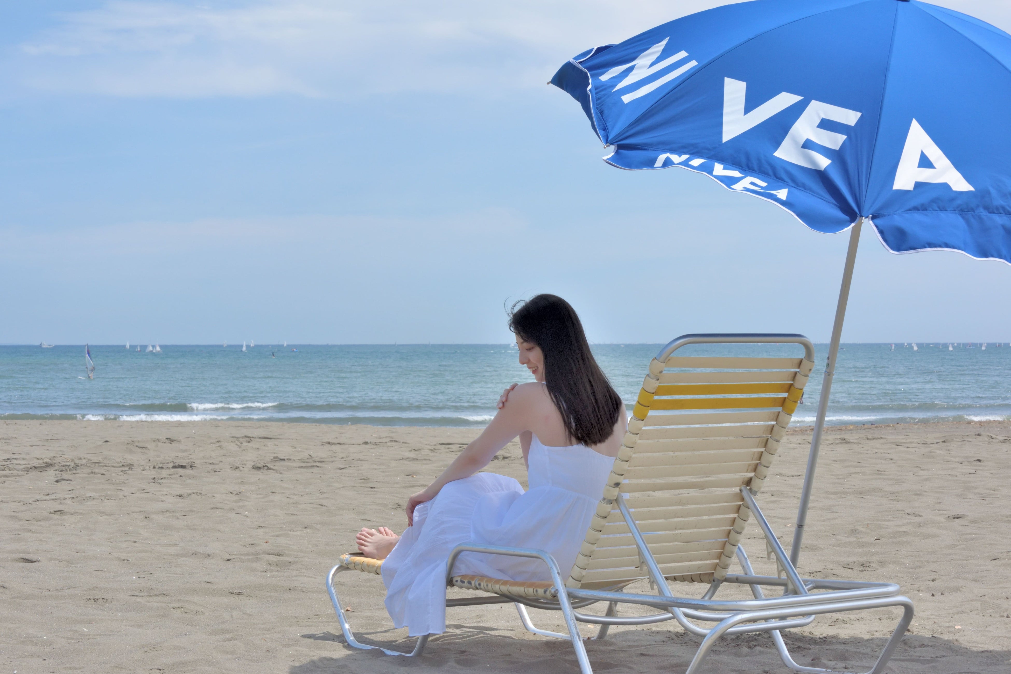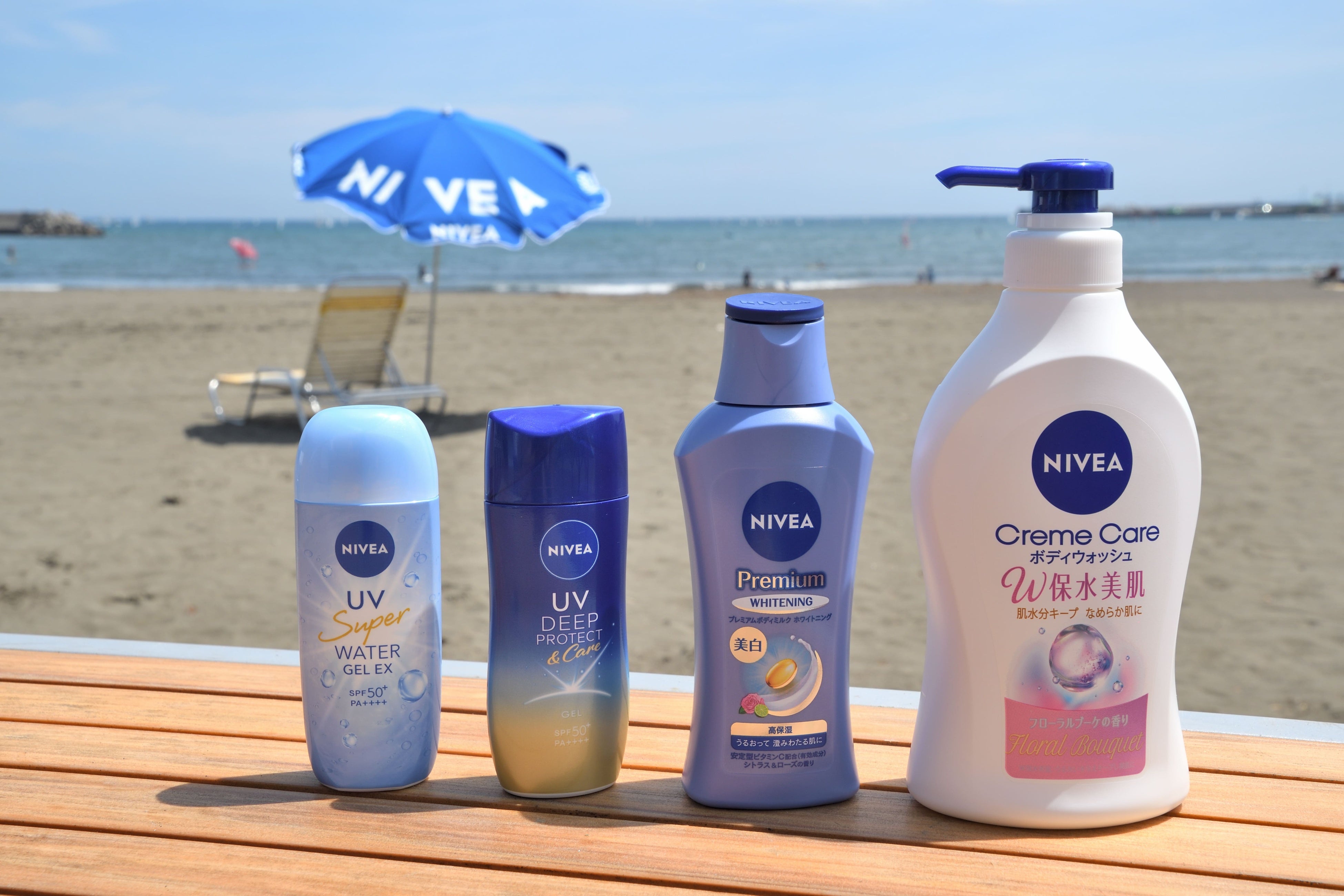 青い海と砂浜に映えるニベアカラーのパラソルを、ぜひこの機会にご活用ください。