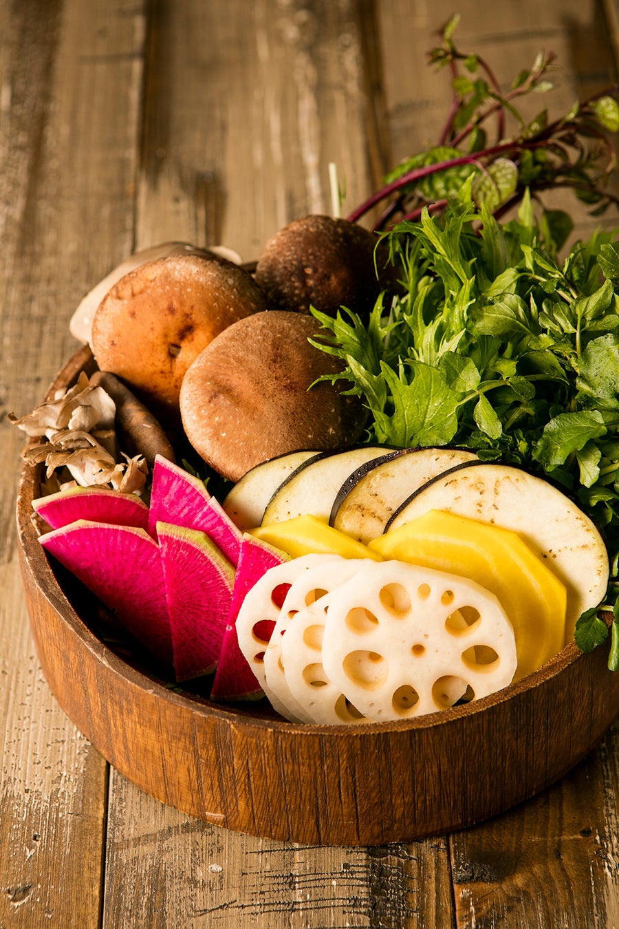 「牛タンや希少部位のお肉をしゃぶしゃぶで堪能しながら、1日に必要な野菜350gをしっかりと召し上がっていただきたい」という想いを込めて2016年、しゃぶしゃぶKINTAN代官山本店の創業時から約9年間、ランチタイム・ディナータイム共に、しゃぶしゃぶに合うお野菜や家庭では手に入りにくいお野菜を常時20種類以上取り揃え、おかわり自由で提供してまいりました。また旬を迎えた一番美味しい状態のお野菜を週に1回セレクトし、“今週のお野菜”として産地や栄養素をお客様に紹介して楽しんでいただいております。