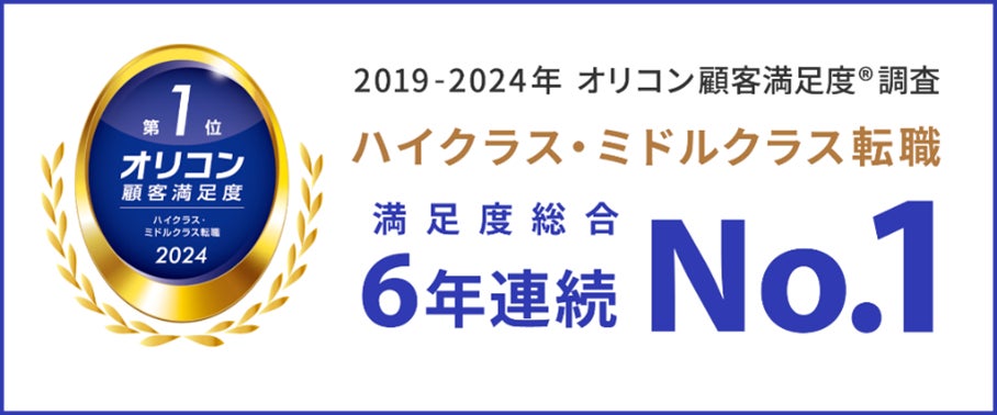 「オリコン顧客満足度®調査 ハイクラス・ミドルクラス転職」において6年連続総合第1位を獲得!