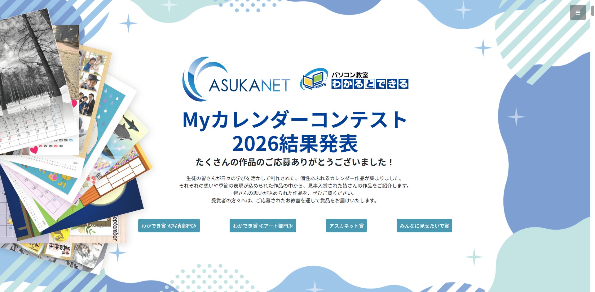 「パソコン教室わかるとできる」を運営する株式会社わかるとできる(代表取締役社長:硲弘一(さこひろかず)、本社:東京都渋谷区、以下当社)は、株式会社アスカネット(代表取締役社長:村上 大吉朗、本社:広島県広島市)との合同開催による「Myカレンダーコンテスト2026」 の入賞作品を、特設サイトにて発表いたしました。
