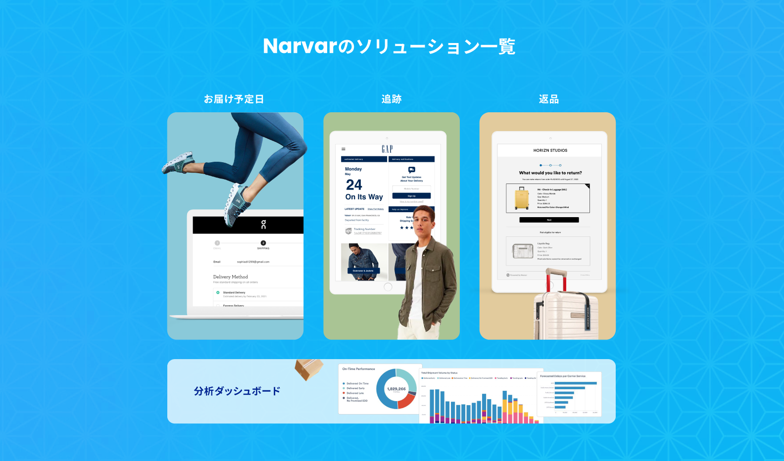 この現状に対し「Narvar」は、「購入後の体験」にこそ売上拡大・顧客体験向上の大きなチャンスが眠っていると考え、ECサイトにおける 「購入促進」「注文からお届けまでのお買物体験の向上」「お届け後のお客さまケア」を実現するサービスを提供しています。