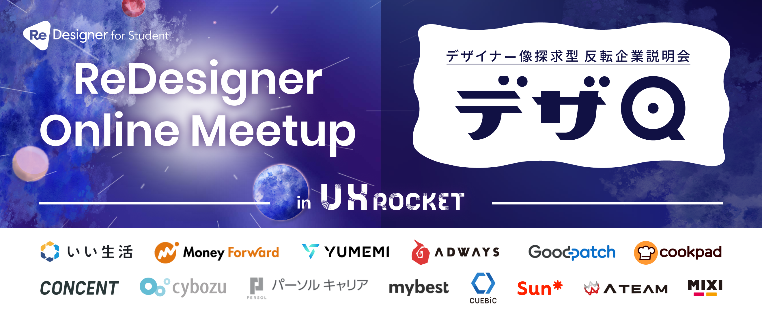 こうした状況から、今回の「UX ROCKET #04」では学生トークセッション、参加企業による企業説明会に加えて、学生主導型の企業説明会「デザQ」を新たな試みとして実施します。UXデザインに関心を持つ学生同士の繋がり、またUXデザイナーを迎え入れている企業との繋がりを生み出すことで、学生自身の「デザイナー像」やキャリアを考える機会を提供します。