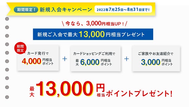 ライフカード株式会社(所在地:神奈川県横浜市 代表取締役:北之坊敏泰)は、2022年7月25日から同8月31日まで、学生対象の「新規入会キャンペーン」を開催いたします。