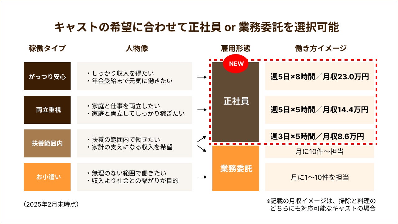 この度、従来は業務委託が中心であった家事支援キャストに、新たに「正社員キャスト」という選択肢を追加しました。
