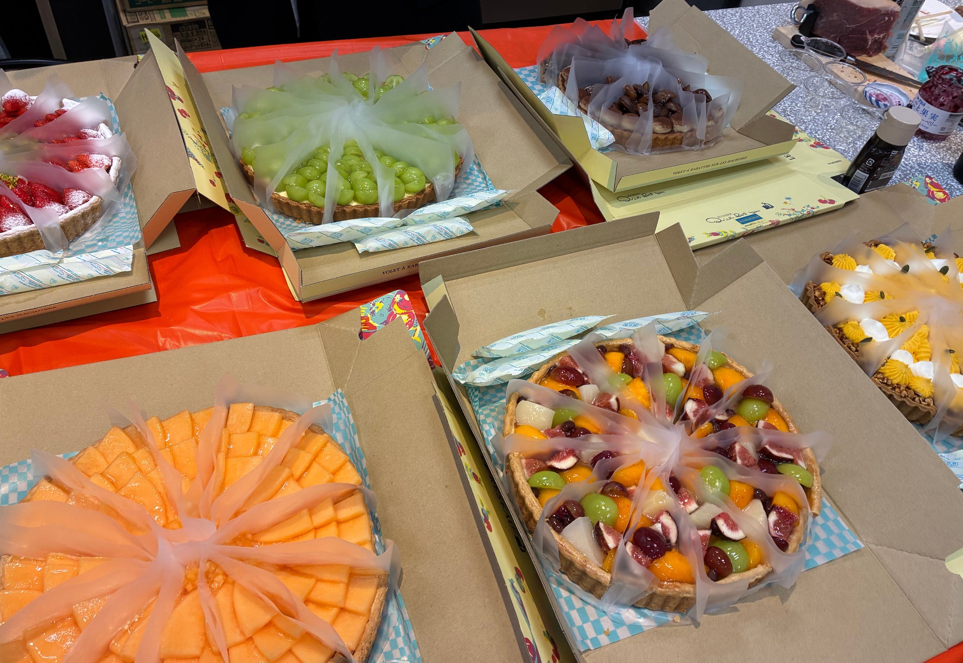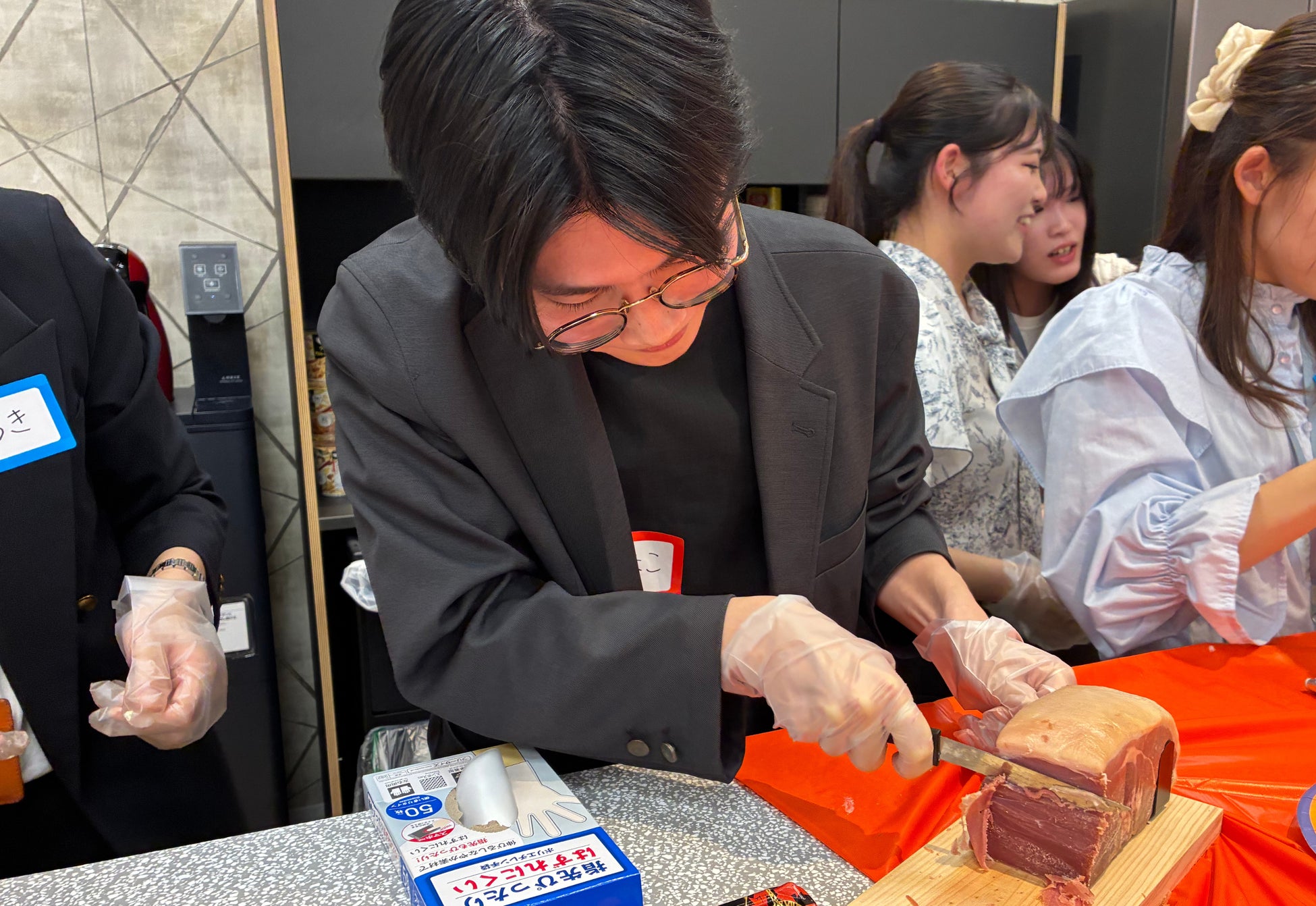 食事はフルーツたっぷりのタルトや原木からカットした生ハムを提供。非日常感溢れる演出に演出に喜びの声が上がりました。余興では社員に顔と名前を覚えてもらえるよう内定者にまつわるクイズを出題したり、eスポーツを得意とする内定者にスポットライトを当てたいという狙いもありマリオカート大会を行ったりしました。