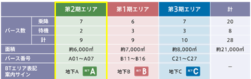 <バスターミナルエリア別概要と案内サイン表記>