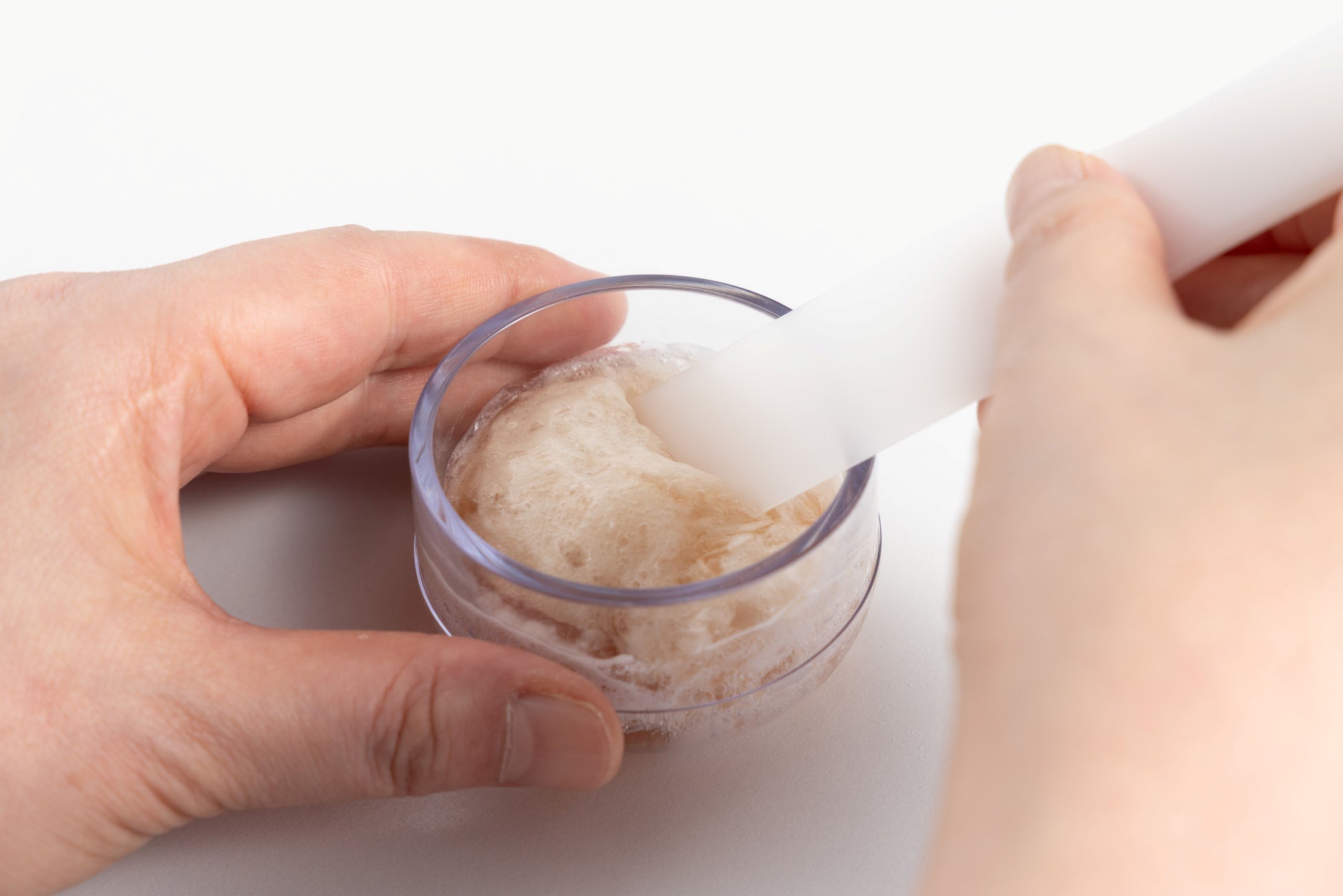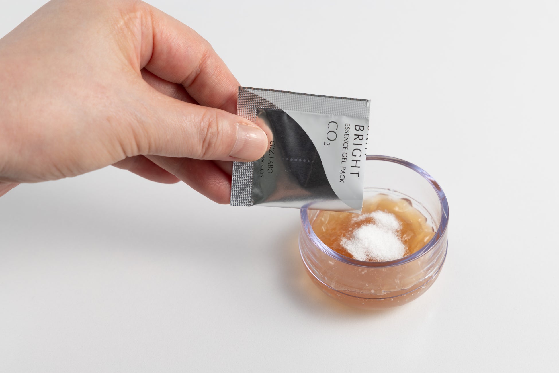 高粘度のジェルと粒子径の小さなパウダーを採用することで、炭酸ガスの揮発を抑制しつつ、浸透性に優れる炭酸ガス発生を実現。また炭酸ガスの溶解度が高い原料を選定し、炭酸ガスが抜けにくい状態を維持しています。
