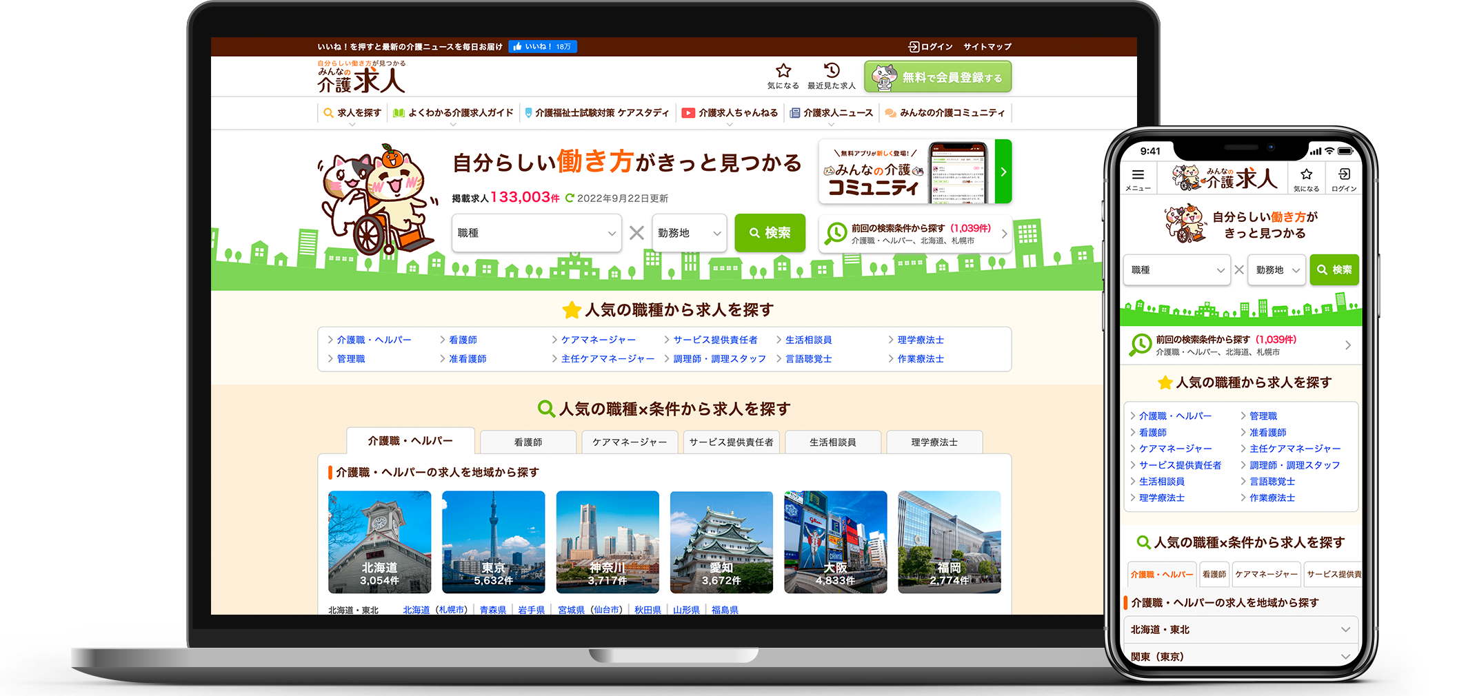介護の⼈材採⽤メディア「みんなの介護求⼈」