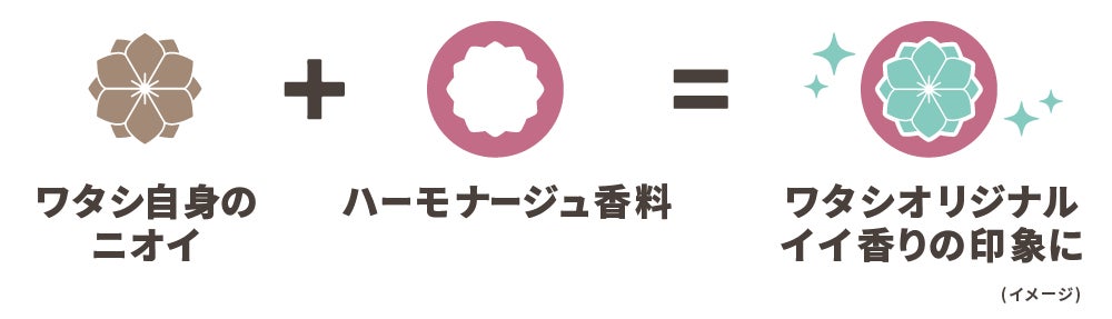 自分自身の“ニオイ”を包みこんで感じにくくさせる※3「ハーモナージュ香料(メーカー呼称)」を採用。自分だけの良い印象の香りにこだわり、機能性香料を取り入れています。