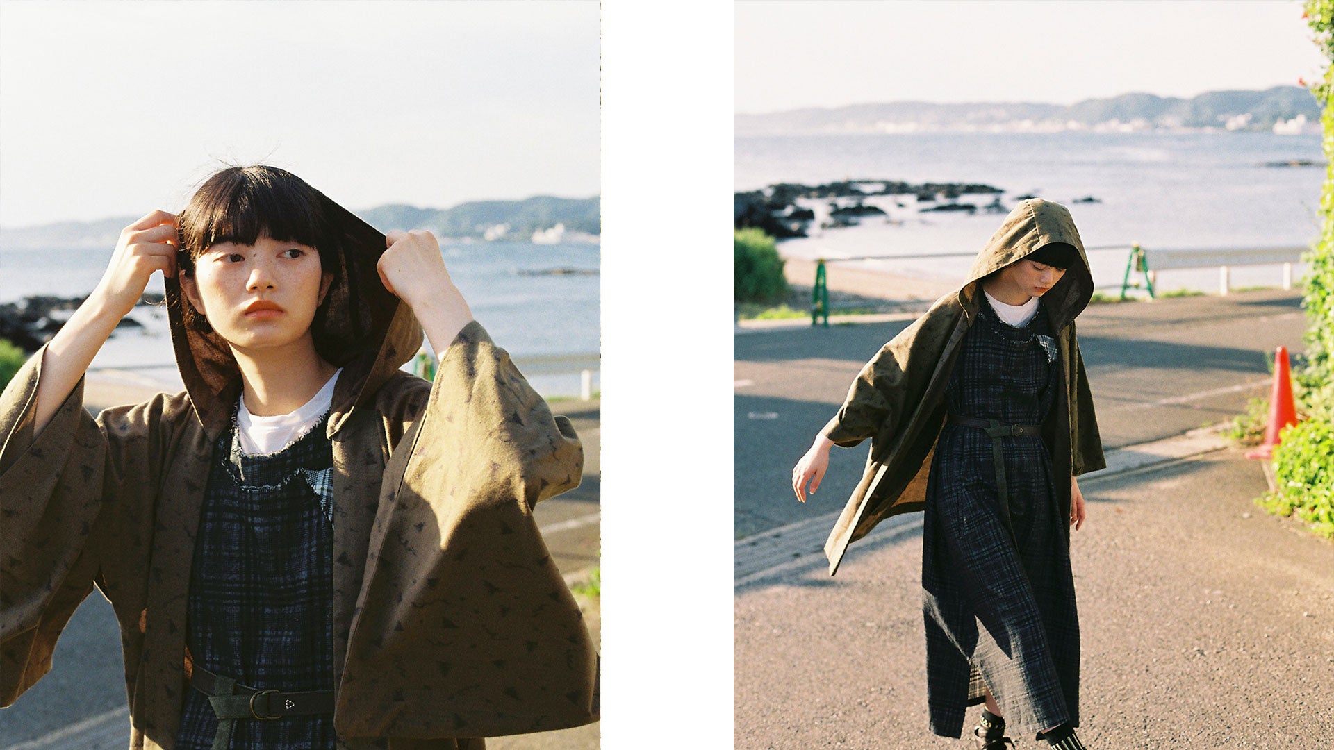 平織りの生地の表面に表情を出すため、ネル(起毛)加工を施し柔らかい素材を表現しています。アーミーな印象のモスグリーンの色合いと、優しい質感のギャップが面白い一枚に。きもの・フード付き羽織それぞれのお仕立てでお楽しみいただけます。