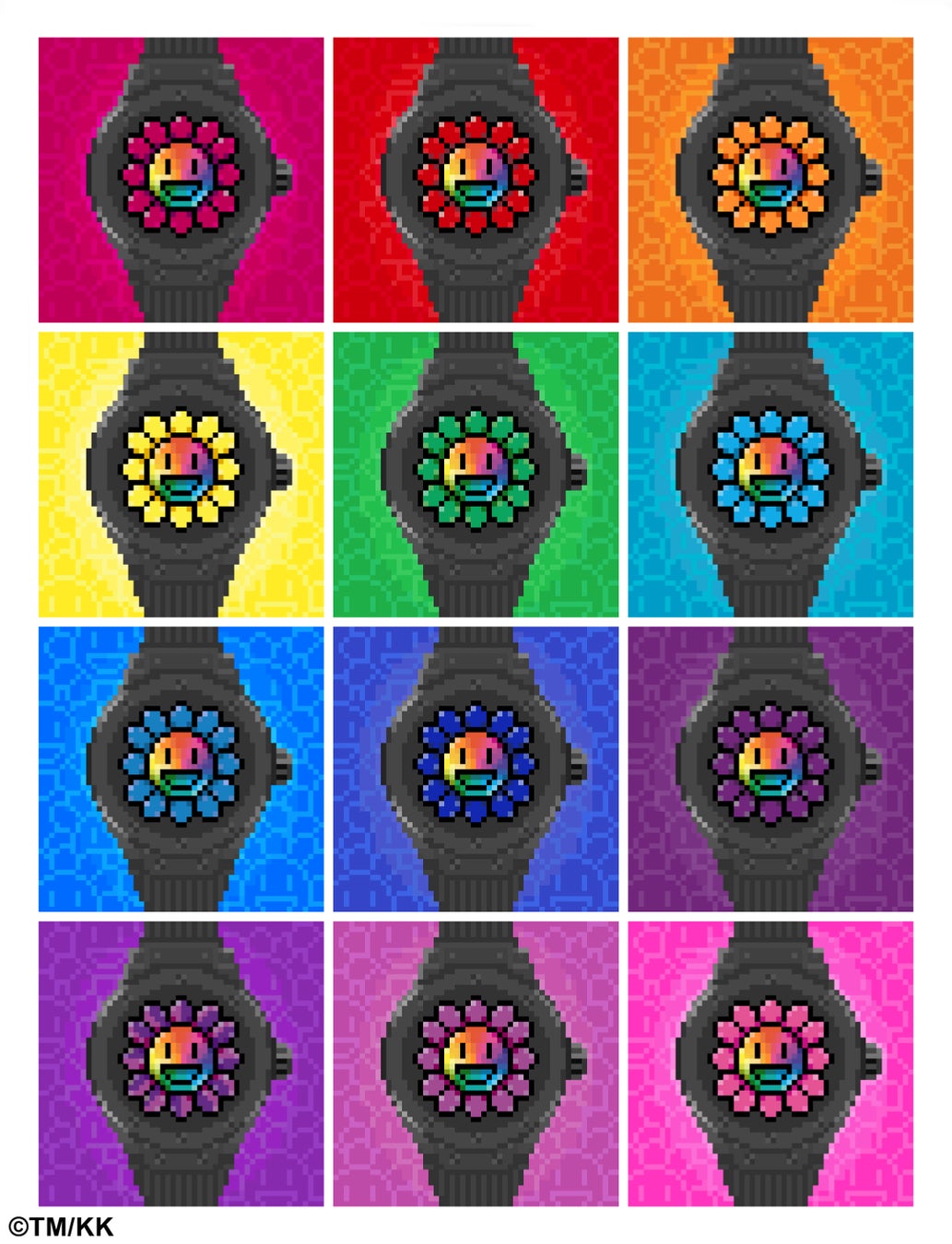 他の12本の時計は、NFTをお持ちの方専用のeコマース・プラットフォームで購入することができます。12本の 腕時計の「お花」はそれぞれ、13番目の時計の花びら1枚の色を表現しています。12種類でダイアルの12時間を示し、そしてそれぞれに対応する12のNFT作品を意味しています。