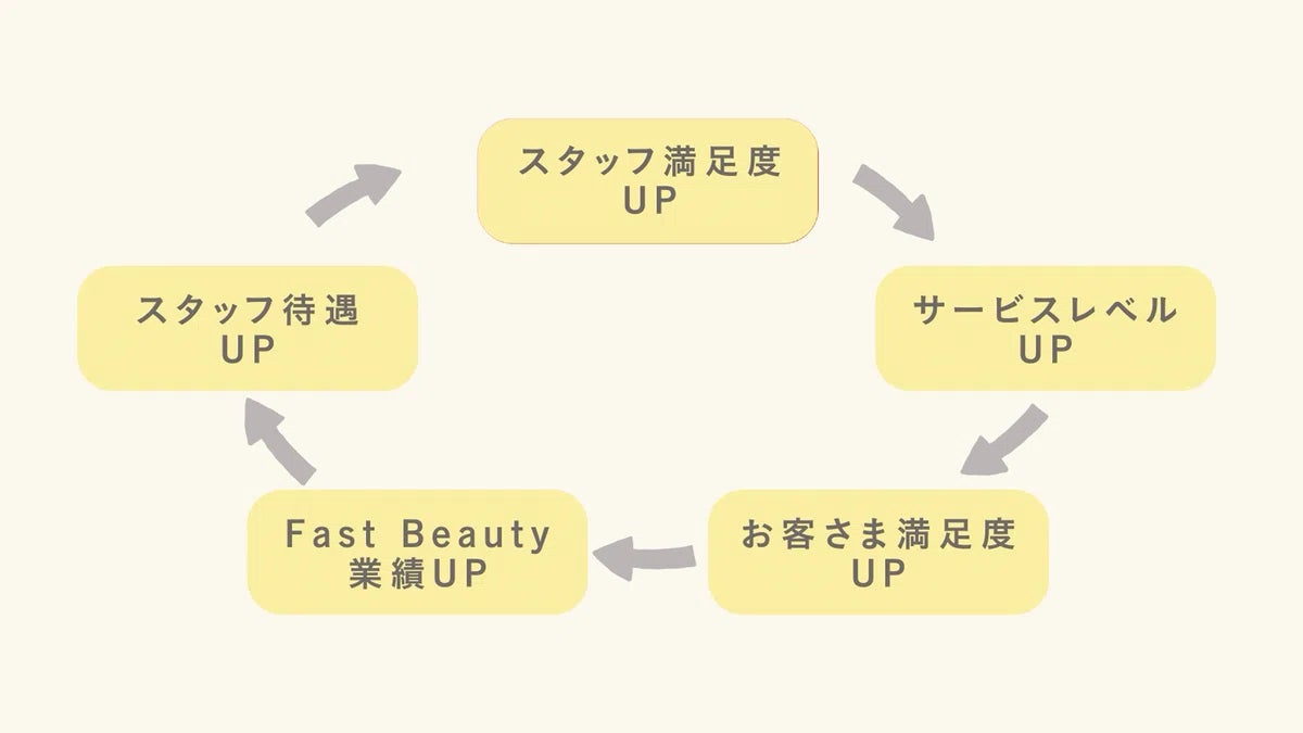 今回の給与改定はその仕組みをさらに強固にし、物価上昇を踏まえた働くスタッフの生活支援による日々の充実度や満足度向上を目指す、人的資本投資と位置付けております。今回のベースアップにより、ヘアカラーという専門性を軸に「安定した働き方」と「専門性の磨き込み」を一層加速し、「働く人」と「通うお客様」を中心にした優しい循環(=ハッピーサイクル) を回し続ける事で、サービスレベルの更なる向上を進めて参ります。