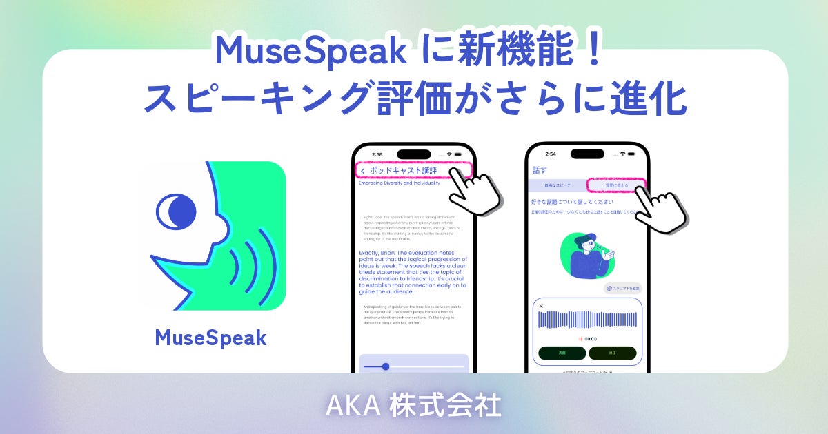 AKAが提供を行っている英語スピーキングAI評価アプリ「MuseSpeak」に、最新のAI技術を応用した『プレミアム機能』が追加されました。