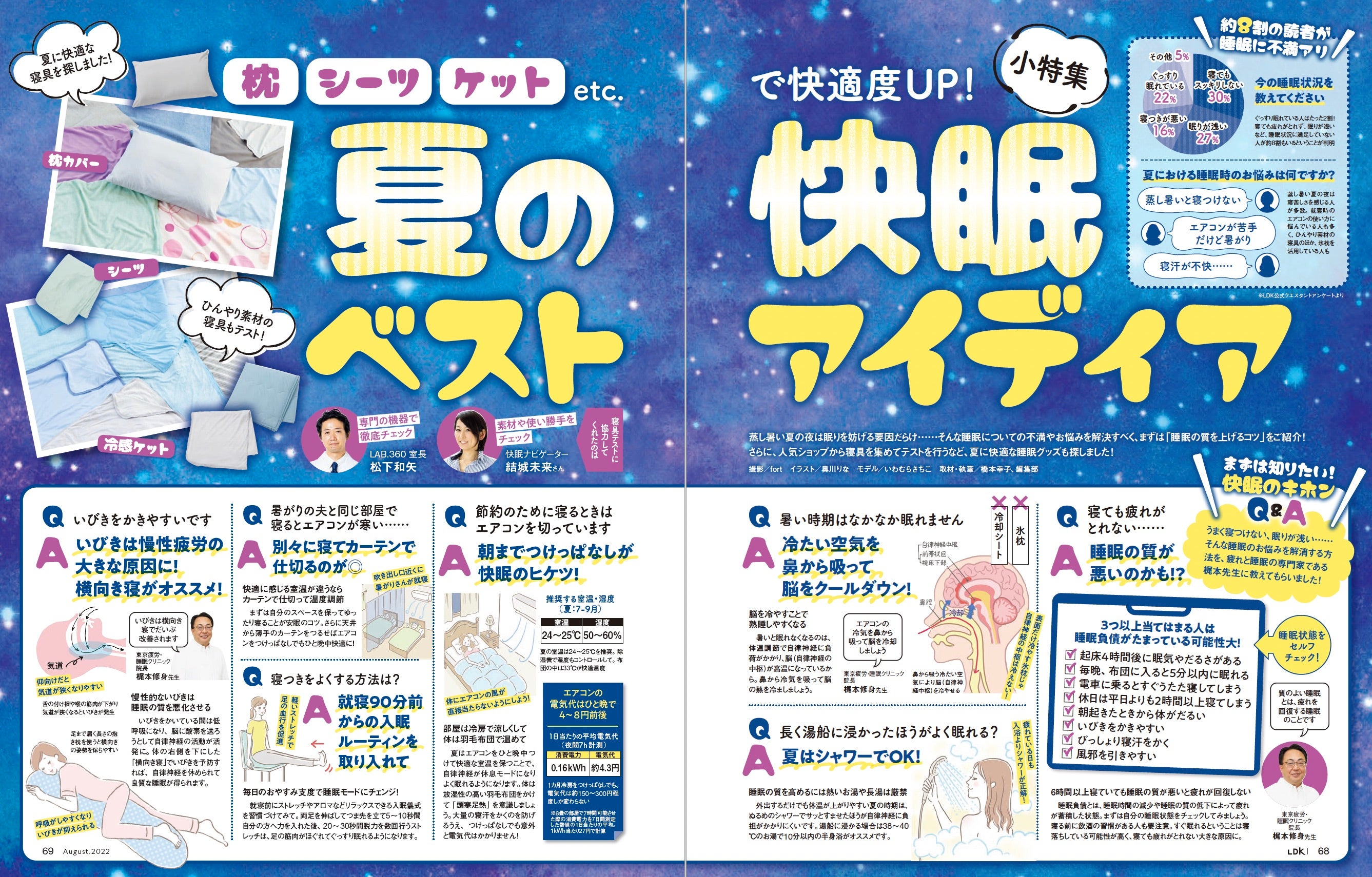 蒸し暑い夏の夜は眠りを妨げる要因だらけ。そんな睡眠についての不満やお悩みを解決すべく、「睡眠の質を上げるコツ」をご紹介! さらに、人気ショップから寝具を集めてテストを行うなど、夏に快適な睡眠グッズも探しました!