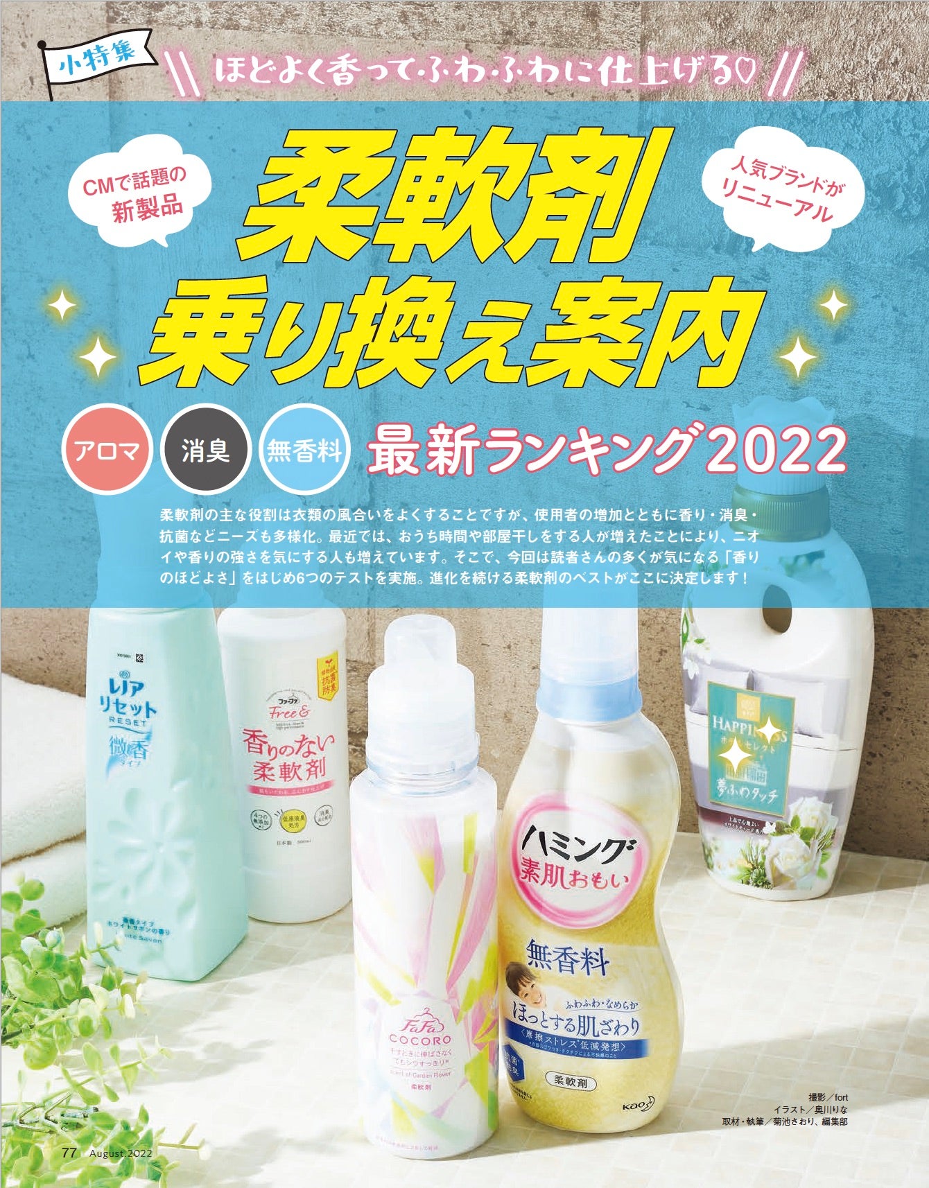柔軟剤は使用者の増加とともに、香り・消臭・抗菌などニーズも多様化。最近では、おうち時間や部屋干しをする人が増えたことにより、ニオイや香りの強さを気にする人も増えています。そこで、気になる「香りのほどよさ」をはじめ6つのテストを実施し、柔軟剤のベストを決定しました。