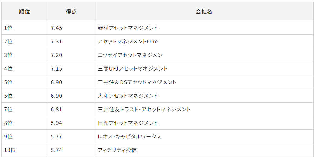 総合第1位は、野村アセットマネジメントが獲得しました。