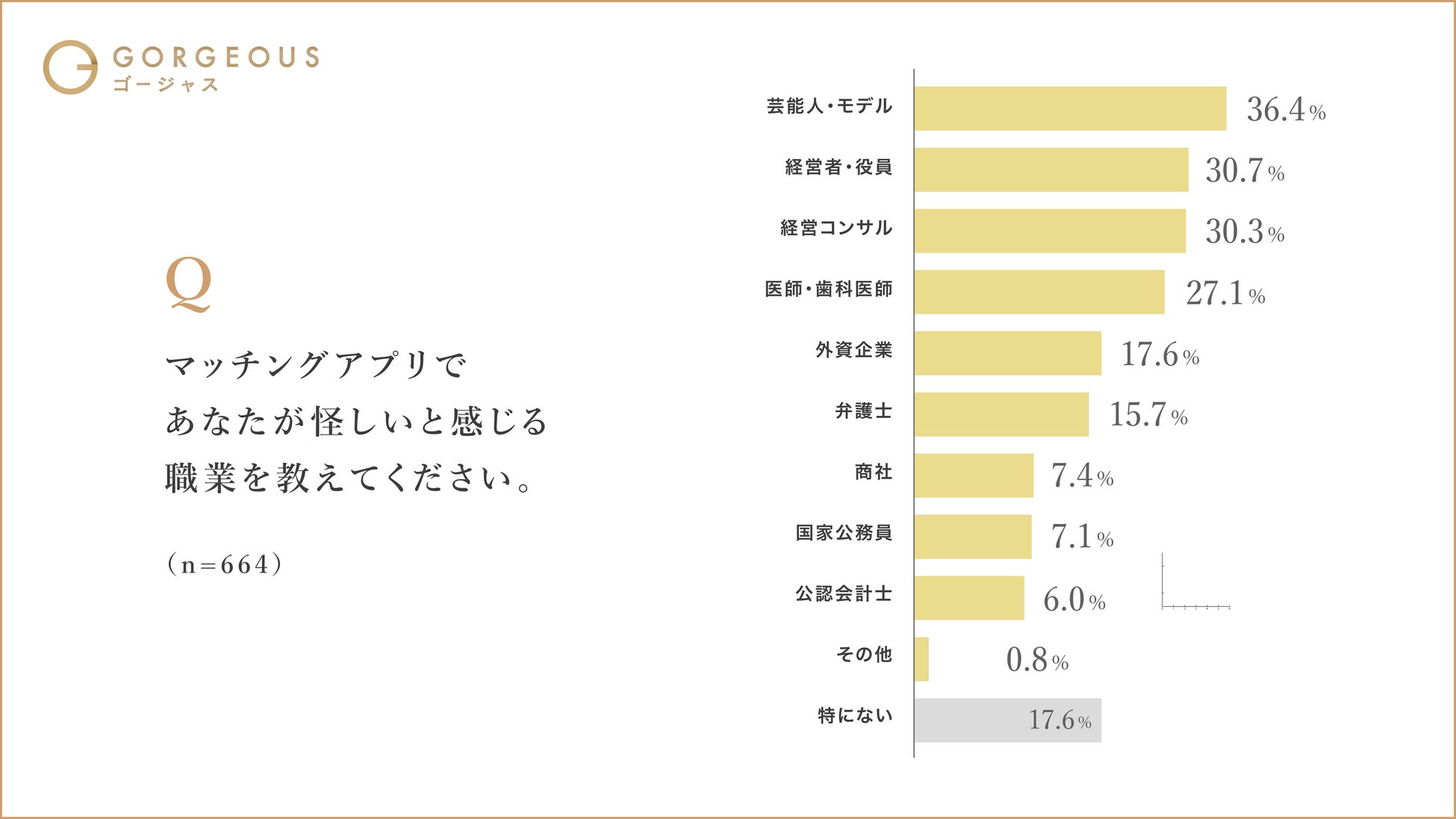 プロフィール写真や年収情報を怪しいと感じる方が多く、また登録されている職業に相手が本当に就いているのかも、回答の上位に入りました。