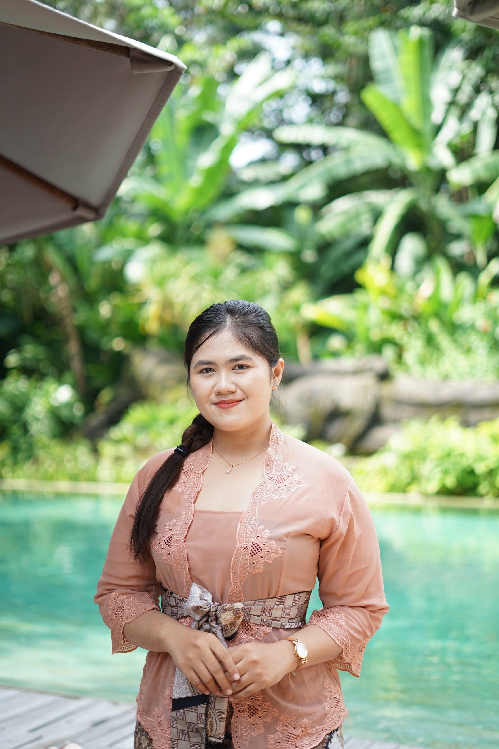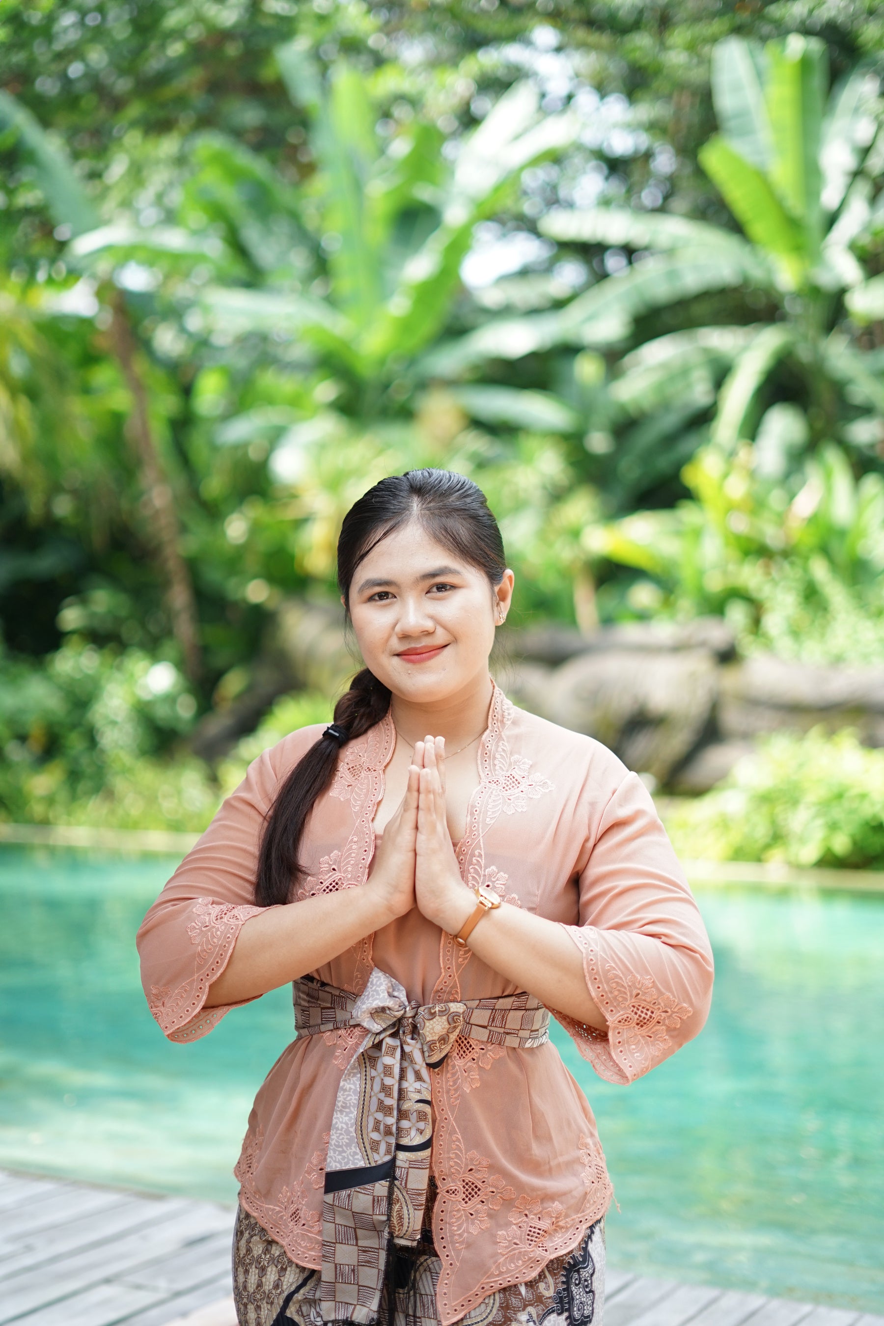 インドネシア出身。ラグジュアリーウェルネスの分野で8年以上の経験を持ち、現在はアンダーズ バリ内「Shankha Spa(シャンカスパ)」にてトップセラピストとして活躍。シグネチャーであるバリニーズマッサージをはじめ、ディープティシュー、ハーバルコンプレス、シロダーラなど多彩な手技を駆使し、心身のバランスを整える施術を提供している。2023年には、インドネシア・ウェルネススパ専門協会(Indonesia Wellness Spa Professional Association)主催による、バリニーズおよびマドゥラ島の伝統療法「Micet Maduraneseマッサージ(Ethno Wellness Nusantara)」部門にて第2位を受賞。インドネシア国内で最も指名されるセラピストのひとりとして知られる。妊娠中の方向けの施術資格も保持し、安全性と安心感を重視したアプローチに定評がある。穏やかな人柄と繊細なホスピタリティで、訪れるゲストを深い癒しへと導いている。