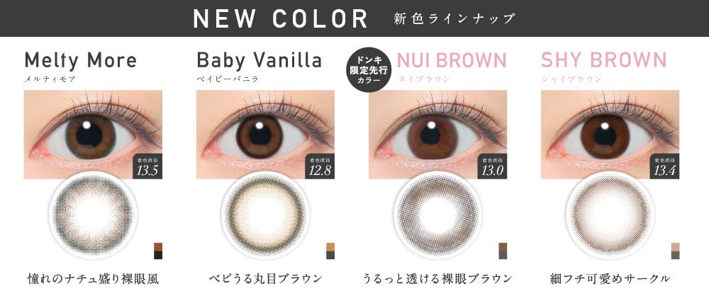 さらに、ドン・キホーテ限定先行カラーとして、1day新色の中でも特に毎日使いに最適な“裸眼風ブラウン”を、マンスリー仕様でいち早くお届けします。