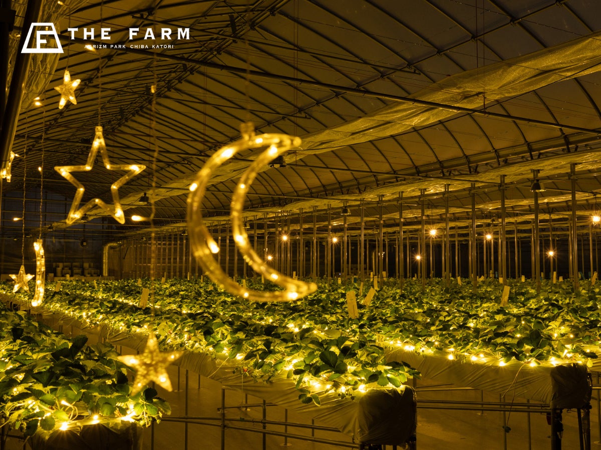星空いちご園は、イルミネーションに包まれた幻想的な空間で楽しむ“ナイトいちご狩り”を提供する、THE FARMならではの特別な施設です。
