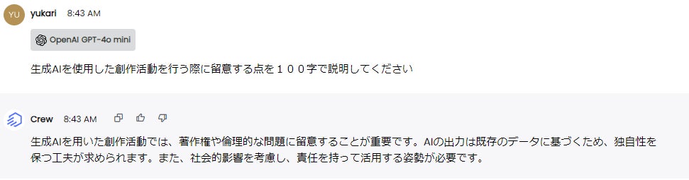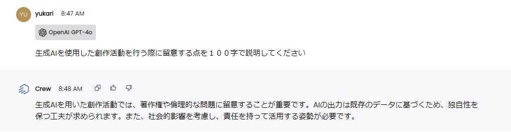 社内資料参照の法人向け生成AI「Crew」、「GPT-4o mini」対応完了
