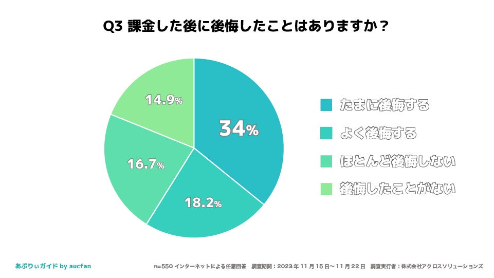 そこで、株式会社アクロスソリューションズと株式会社オークファンが共同運営しているあぷりぃガイド(URL:https://aucfan.com/appguide/)は、20歳〜60歳の男女550人を対象に「スマホのアプリの課金に関するアンケート調査」を実施しました。