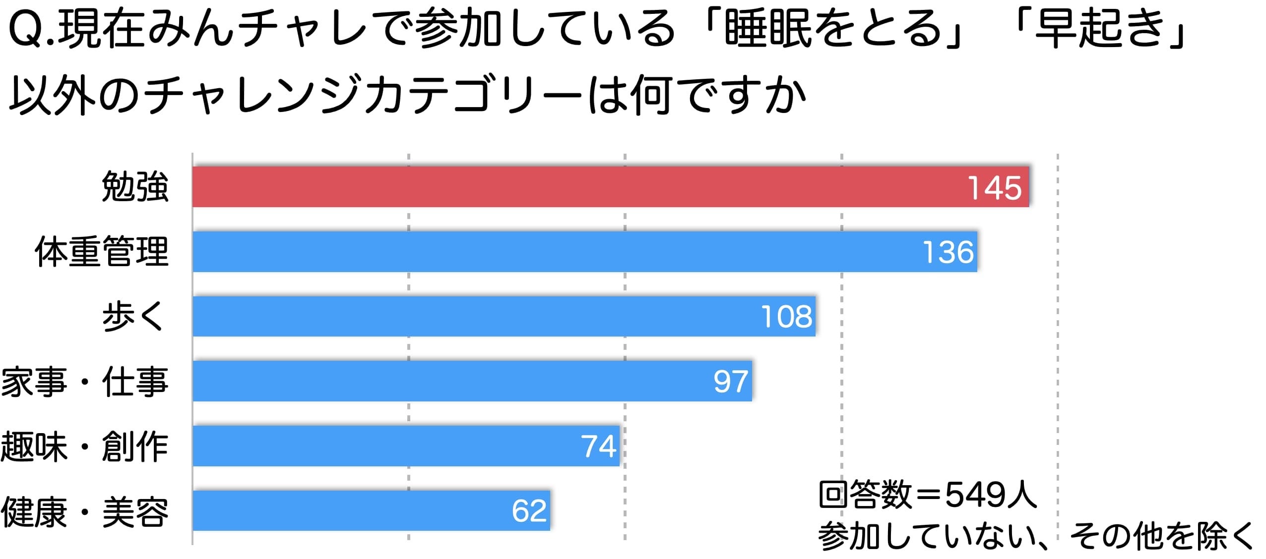 チーム制習慣化アプリ「みんチャレ」を使って、睡眠に関するチャレンジをしている人は、同時にそのほかの習慣化にも取り組んでいます。