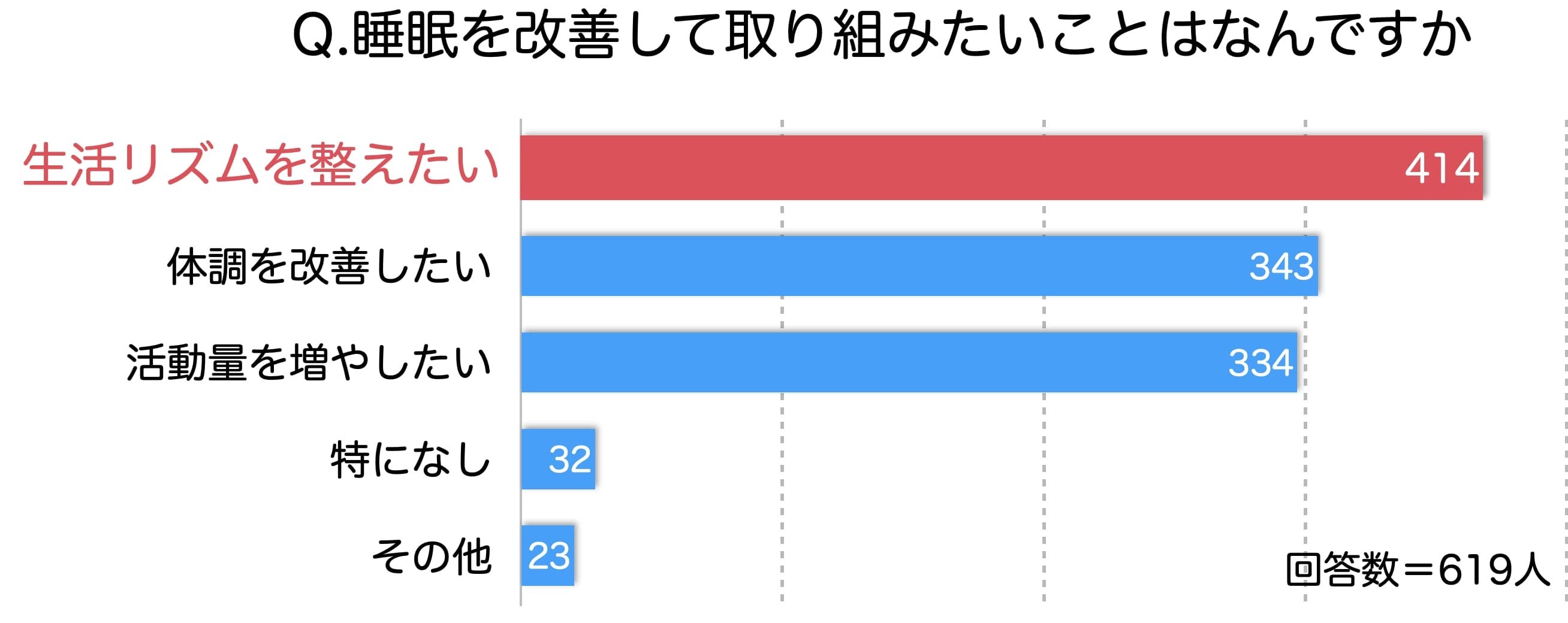 また、睡眠時間を見直し、睡眠の質を上げることで、「活動量を増やしたい」という声も過半数みられました。