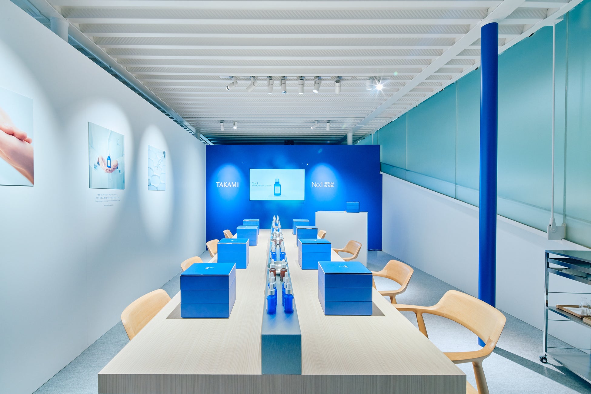 ご来場いただいた方々には、ブランドカラーの青で彩られた空間にて、“タカミスキンピール”の20年の歴史を振り返りながら、“タカミスキンピール”をフォトジェニックに演出した展示や、タカミスキンピールご愛用者の声の展示、タカミスキンピールをサイエンスの観点から学べる体験エリアなど、数多くのコンテンツをお楽しみいただきました。