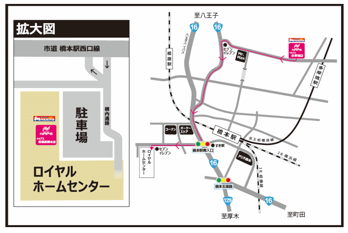 ※アップガレージライダースナップス相模原橋本店はナップス店舗併設となります。