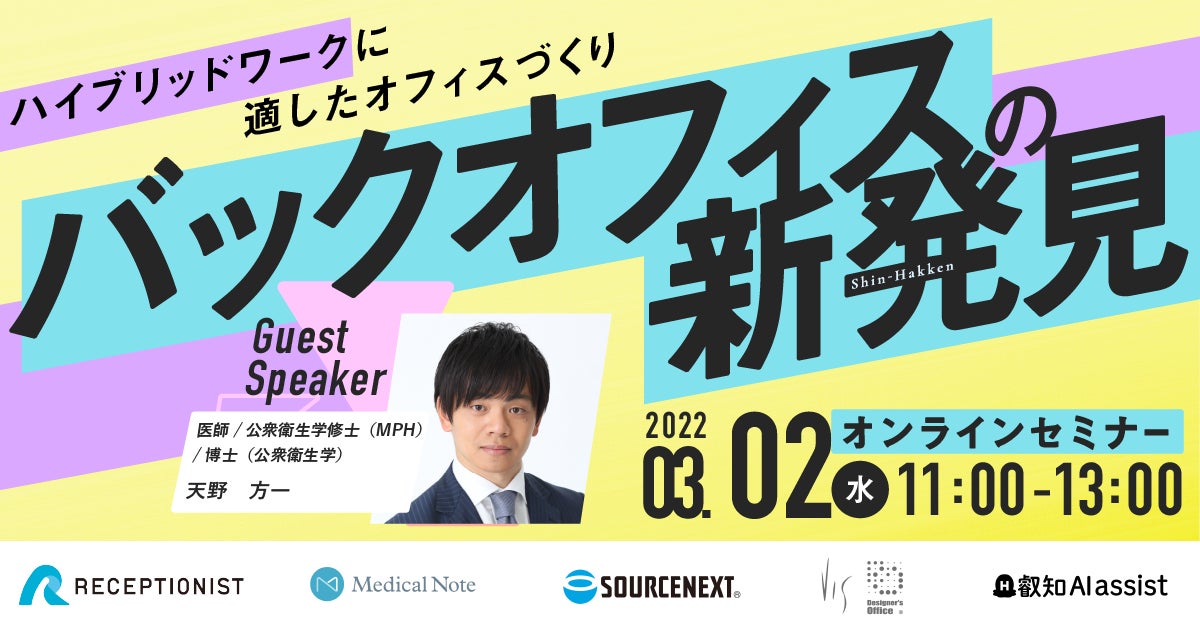 株式会社メディカルノート(東京都港区、代表取締役CEO:梅田 裕真、代表取締役:井上 祥、以下、メディカルノート)は、株式会社RECEPTIONIST(以下、RECEPTIONIST)が2022年3月2日に主催する、バックオフィスで働く方々を対象としたオンラインセミナー「#バックオフィスの新発見〜ハイブリッドワークに適したオフィスづくり〜」に、メディカルノート取締役CROの水野玲生が登壇することをお知らせします。