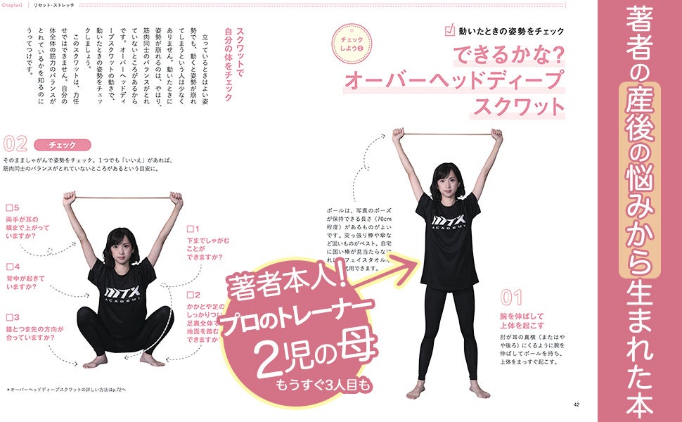 そんなストレッチやエクササイズを、スポーツドクターの監修でブラッシュアップさせ、「産後リセトレ」としてまとめたのが本書です。