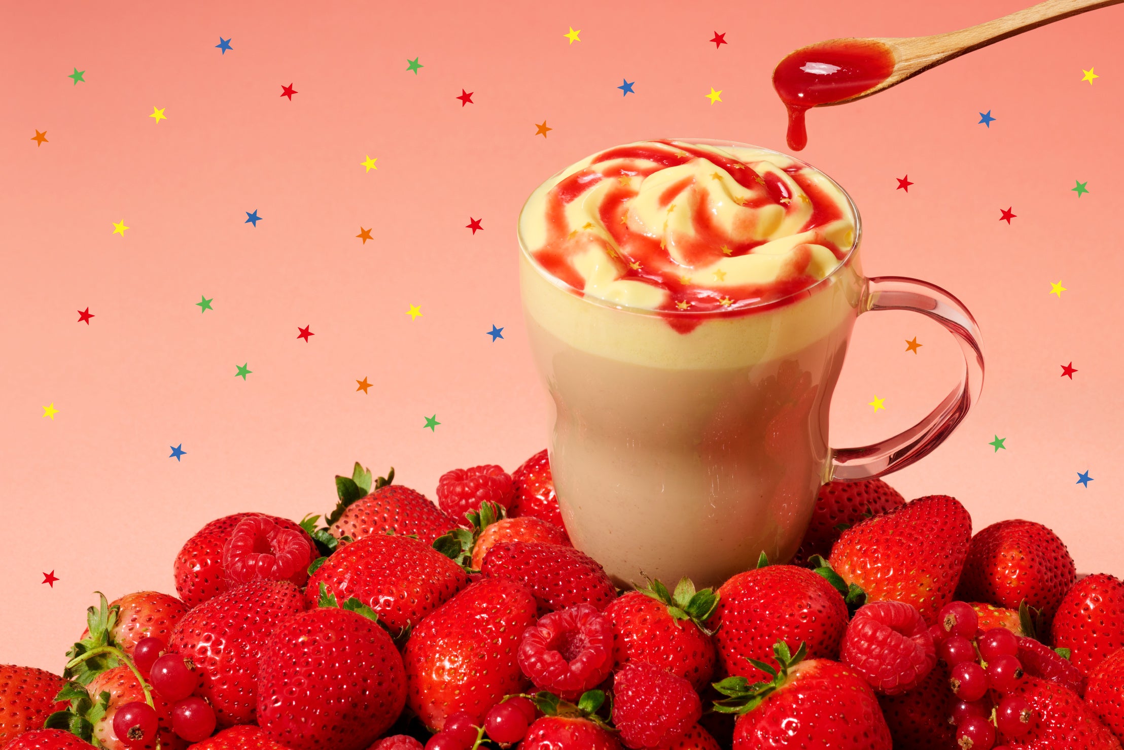 「ベリーBerryカスタードラテ」は、抽出したての芳醇なエスプレッソと、自家製ベリーソースとまろやかなミルクを一緒にスチームし、カスタードホイップとベリーソースをトッピングして仕上げた、優しい甘さとベリーの酸味が特徴の、ポップで華やかなドリンクです。