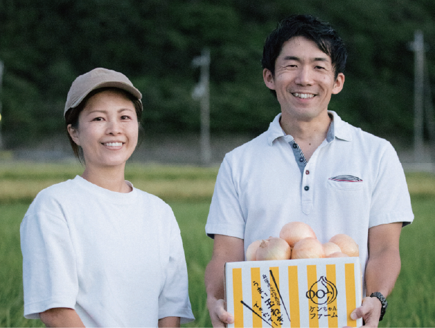 写真は、淡路島で実家の家業を継ぎ、たまねぎを栽培・販売しているケンちゃんファームの代表 天野倫子さんと