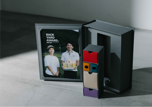 「BACKYARD AWARD」では、オリジナルケース、オリジナルトロフィー、受賞者が掲載されているオリジナル冊子「AWARD BOOK」をセットにして贈呈しています。