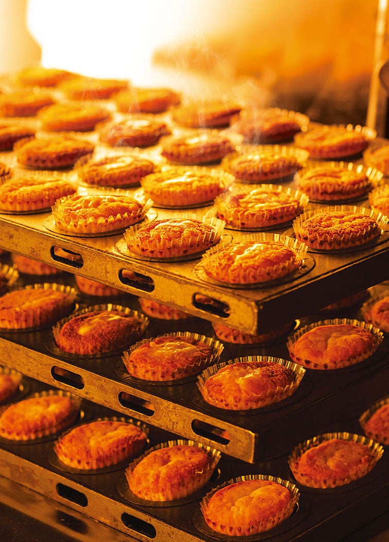 チーズ好きの方はもちろん、普段あまりチーズを食べない方にも喜ばれる商品にするために、素材選び、配合バランス、焼き加減など、在籍する全てのシェフと共に、試作したパターンは100通り以上。素材となるチーズは、チェダーやカマンベールなど様々な種類のチーズの中から、芳醇でマイルドな風味が人気のゴーダチーズを厳選。しかし、いざチーズ生地を焼き上げてみるとゴーダチーズ本来の風味や香りが弱まってしまい、口の中でとろりとひろがる食感も表現できていないことがわかりました。そこで、シーキューブ独自の“後入れ製法”を最大限に活かすべく、今までにはない工程でチーズソースも新たに開発、口の中でとろりとひろがる食感を表現しました。外はふっくら濃厚で、中はとろりと風味豊かな味わい。隠し味に濃縮レモンペーストを入れ、重くなりすぎないさっぱりとした後味に仕上がっています。手間がかかる製法をあえて取り入れた