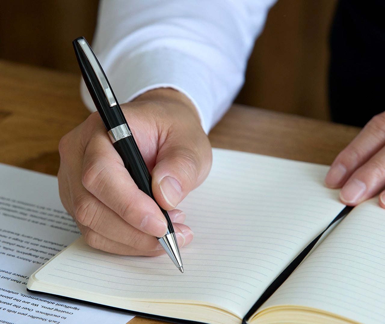 万年筆の細字が選択肢に加わる事で、日本人の筆記環境にとってより実用的となり、所有欲を満たしつつ日々の相棒としてより一層の活躍を期待出来ます。ボールペンは、程よいボリュームとラグジュアリーな雰囲気を纏うラッカー仕上げのボディに加え、万年筆と同じくスペシャルボックスに本革製ペンシースが付属しますので、特別な贈り物としてもお勧めです。