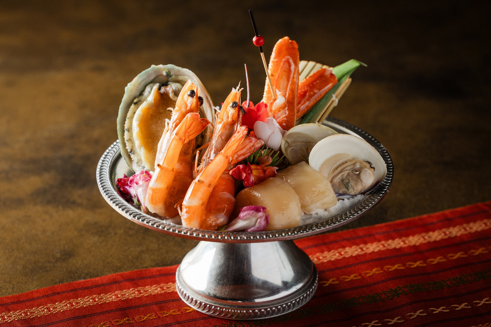 この度5周年の節目を記念し、以前よりご要望の多かった「海鮮盛り」を追加料金なしでご提供。通常では味わえない、5周年にちなんだ海鮮5種(ずわい蟹・あわび・蛤・帆立・海老)を贅沢に舟盛りでご堪能いただけます。(海鮮はスターター盛合せのみでのご提供となります。)