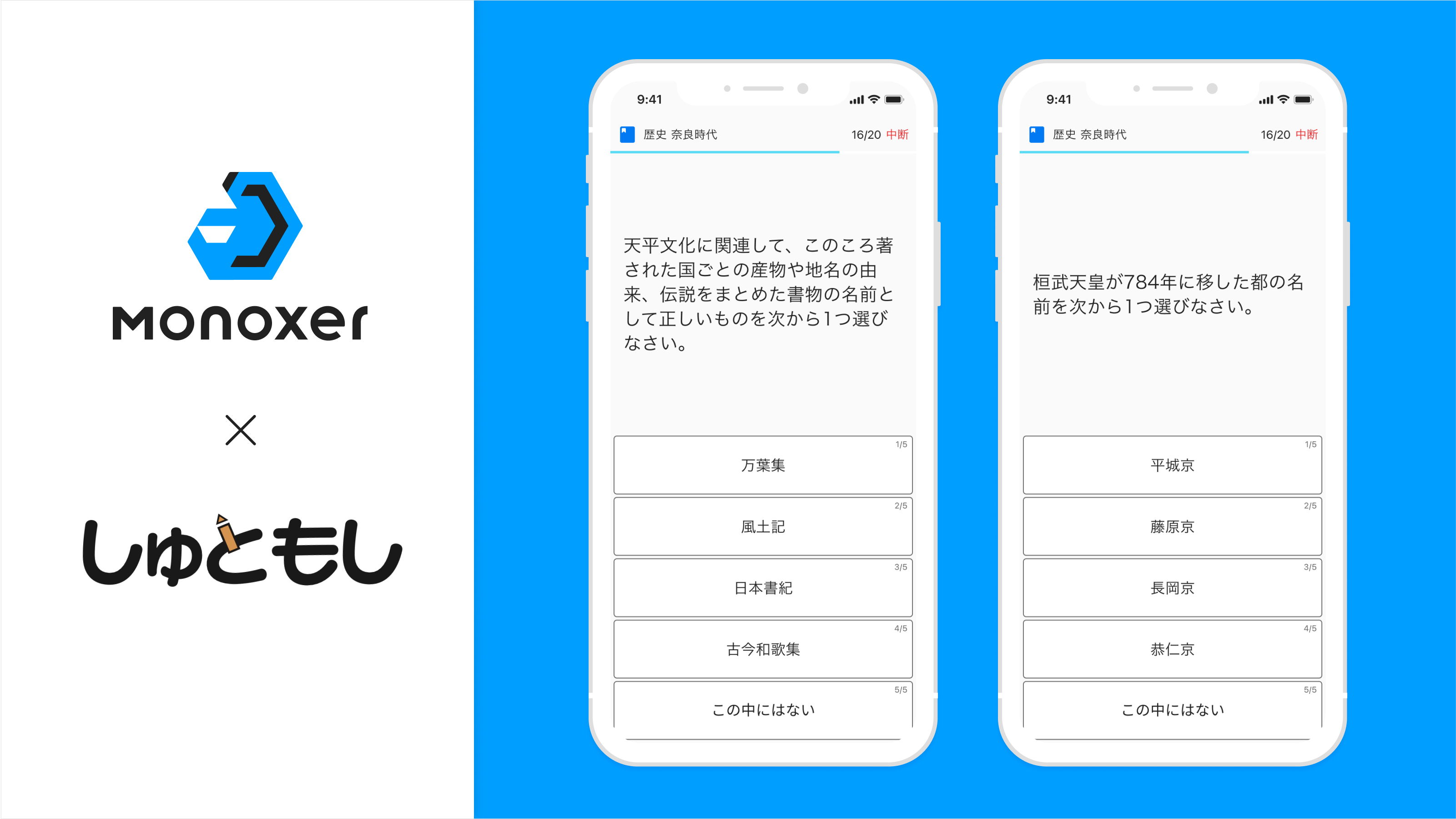 第一弾として、学習者が志望校合格から逆算した効率的な記憶定着に取り組めるMonoxerを活用した中学受験用教材『しゅと問モバイル(社会)』を2023年9月よりリリースしました。