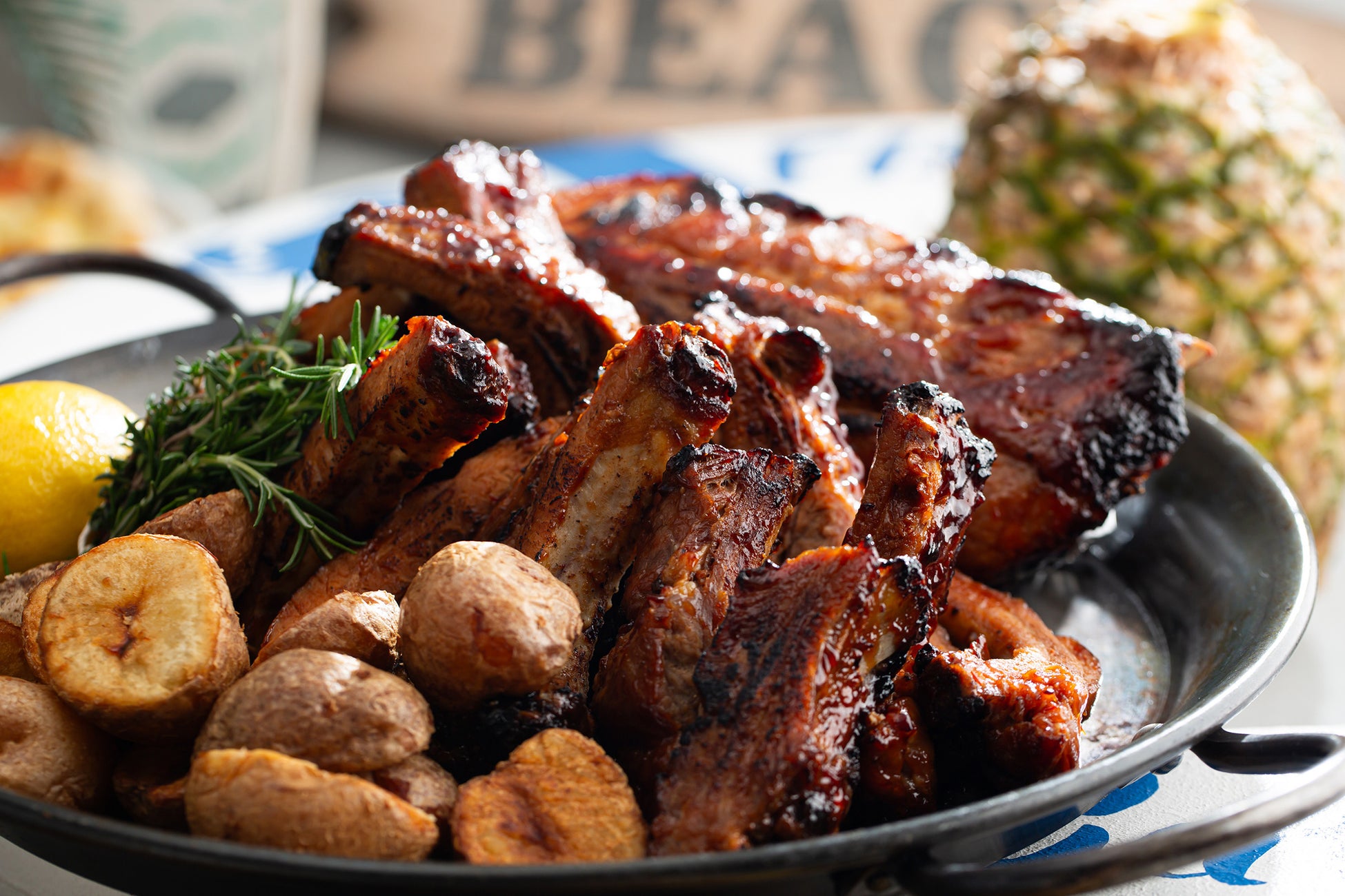例年人気の「焼きたて!ビーフステーキ」をはじめ、オリジナルブレンドのBBQソースで香ばしく焼き上げた「ポークスペアリブ」や、ふっくらと揚げた鶏肉に甘酸っぱさの中にピリッと辛味のアクセントが効いたオレンジソースを絡める「ハワイアンオレンジチキン」、ハワイでポピュラーなシイラをスパイシー風味に仕上げた「マヒマヒのハワイアングリル」など、ハワイのローカルフードを含む約30種のメニューが並びます。