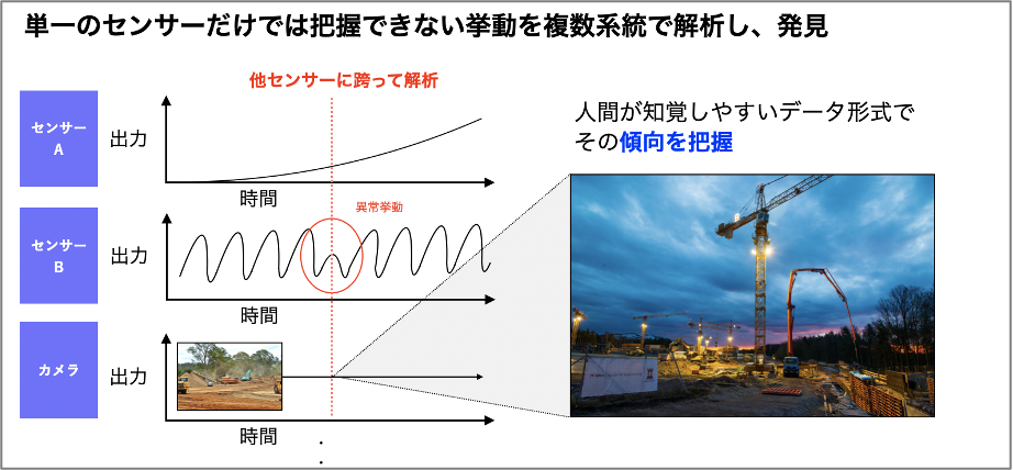 ①センサーデータ:重機の操業位置、速度等
