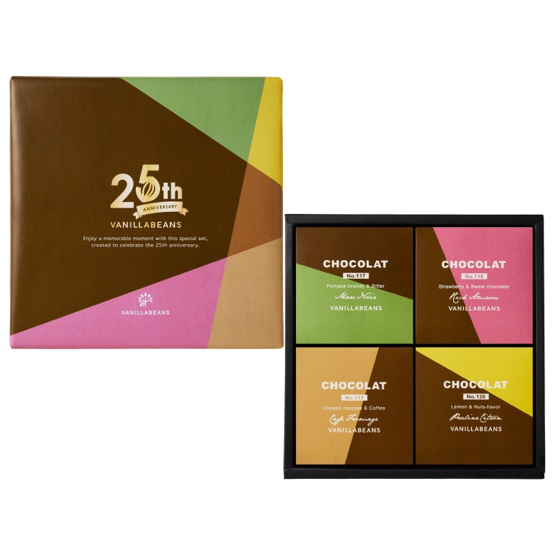 2025年4月3日のブランド25周年を記念した特別アソート。当店人気No.1の生チョコクッキーサンド「ショーコラ」が2層仕立てになった限定フレーバー4種をお楽しみいただけます。