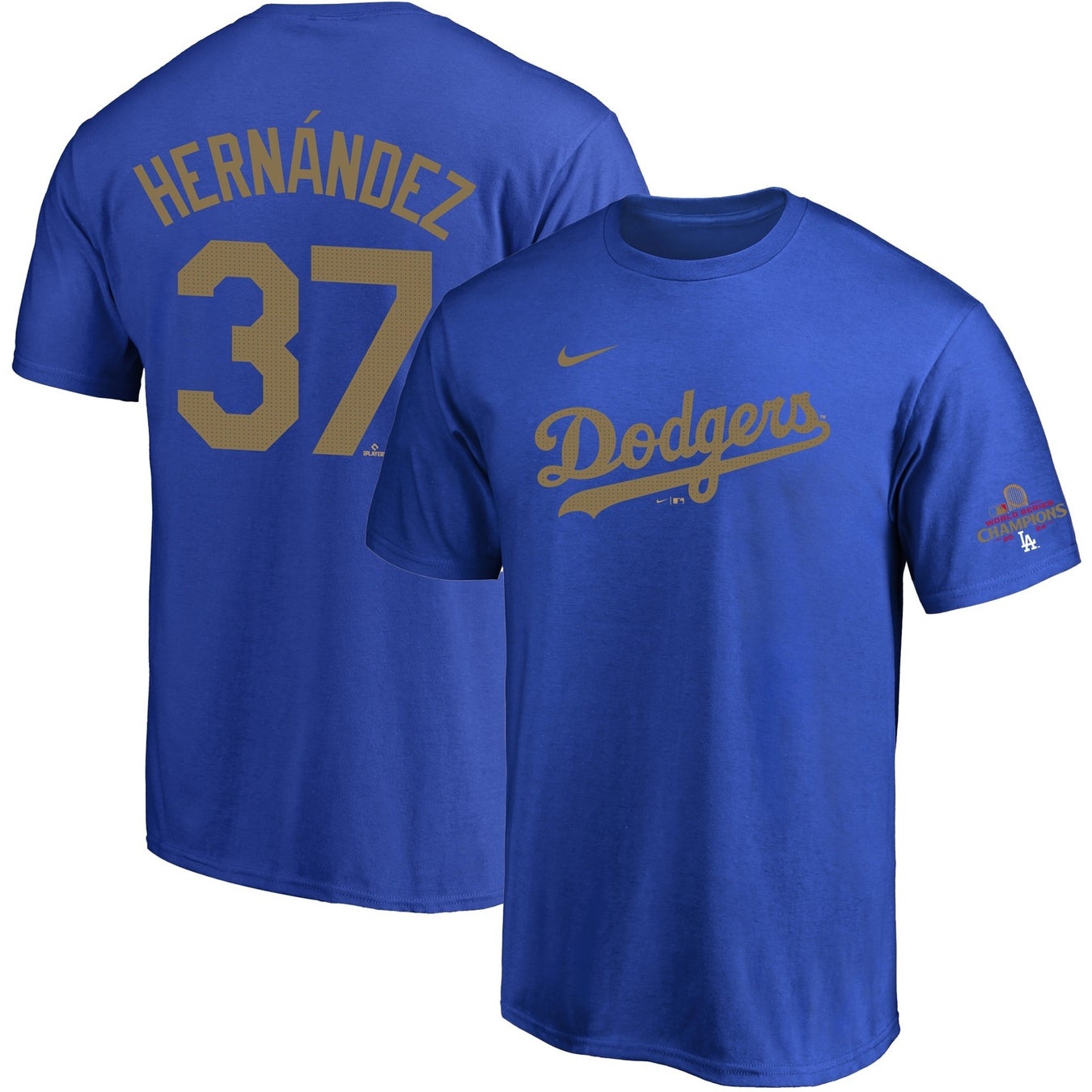 ゴールドコレクションは、ドジャースロゴと背番号を金色でデザインし、それぞれMLBロゴの青と赤の縁取りを施した特別仕様。さらに、右袖には「WORLD SERIES CHAMPIONS 2024」の記念パッチが付いています。