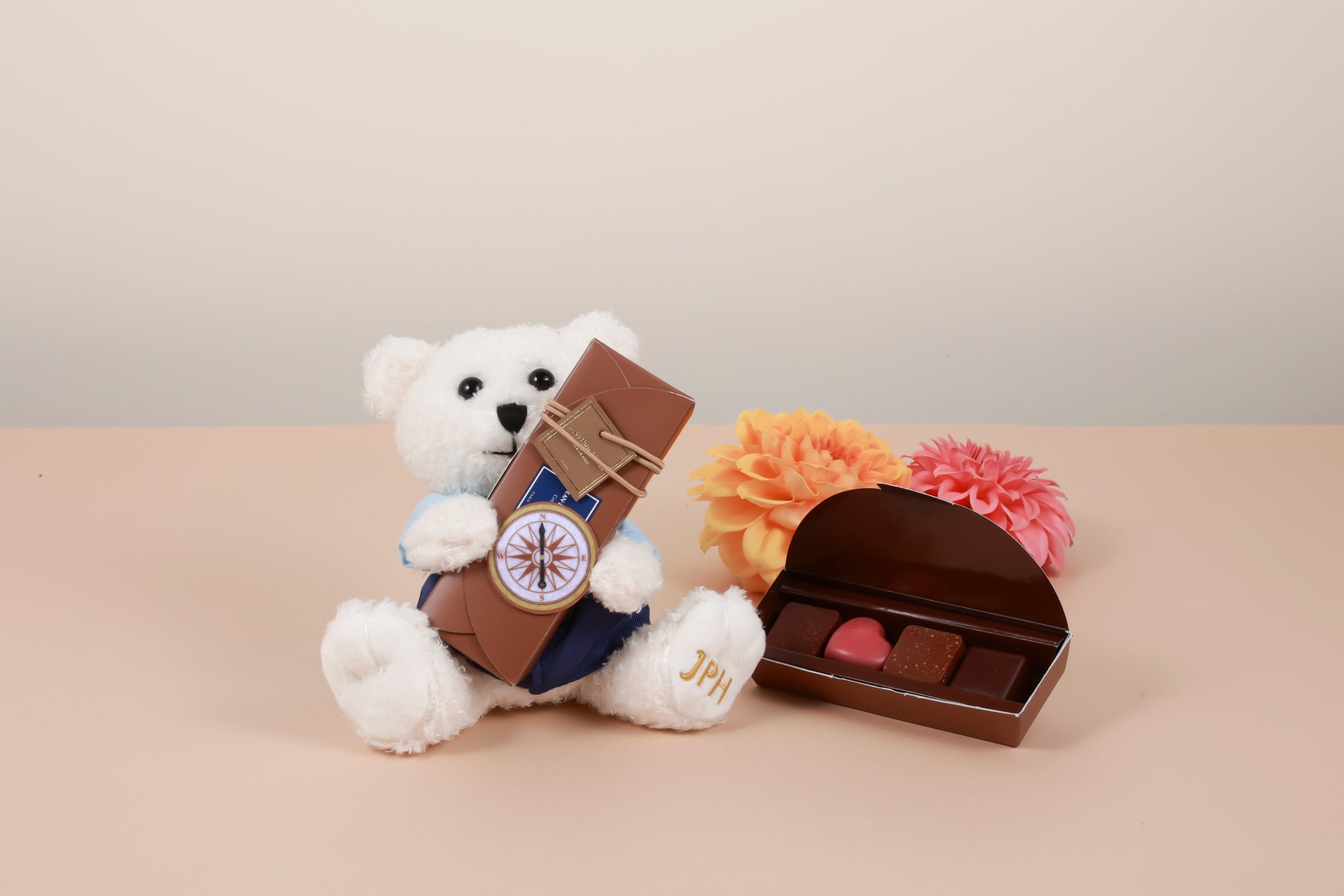 ベアは<新しい世界>へ針路をとって旅するジャン=ポール・エヴァン自身がモチーフ。期間限定のショコラ3個を含む、ボンボン ショコラ4個詰合せ。