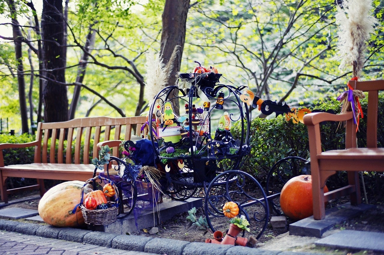 概要:神戸布引ハーブ園のガーデン各所がハロウィンディスプレイに彩られています。
