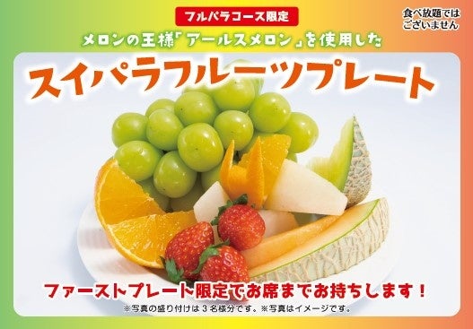 スイパラ農園契約農家さんから産地直送で届いた「アールスメロン」を使用したフルーツプレートをファーストプレート限定でご提供いたします。