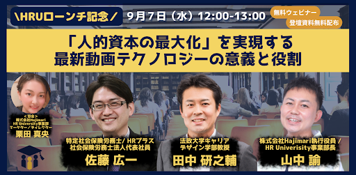 HRUローンチ記念の特別セッションとして、弊社執行役員兼HRU事業部長の山中と共に、法政大学キャリアデザイン学部 田中教授、社労士でHRプラス社会保険労務士法人代表社員の佐藤先生が
