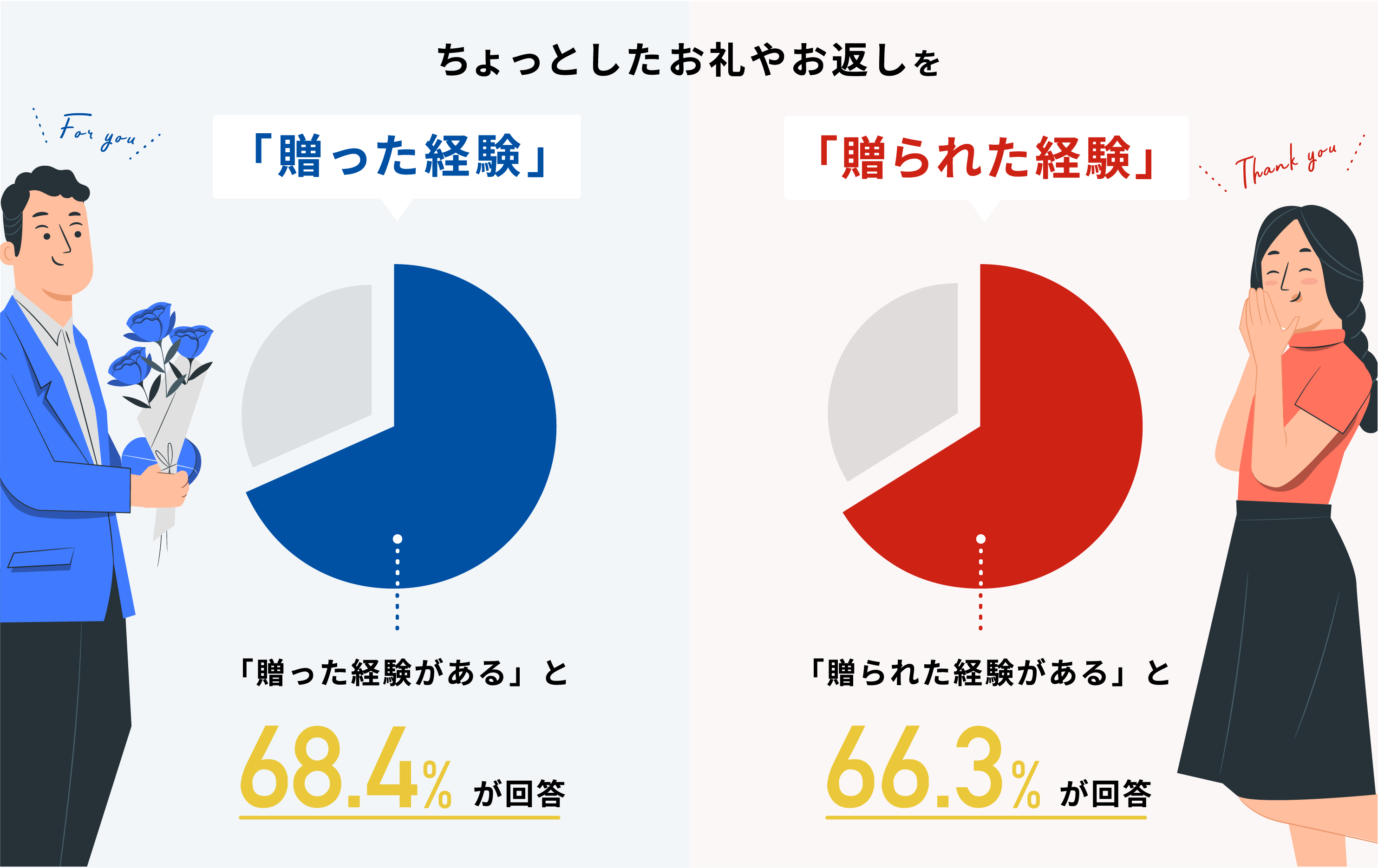 また、ちょっとしたお礼やお返しを「贈られた経験がある」のは66.3%となりました。
