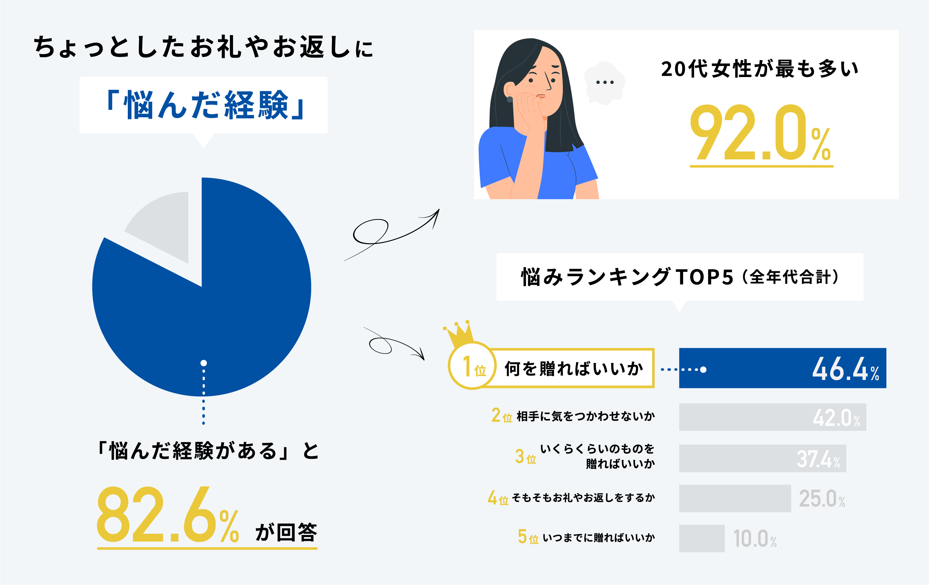 - ちょっとしたお礼やお返しに悩んだ経験82.6%!悩み第1位は「何を贈ればいいか悩む」